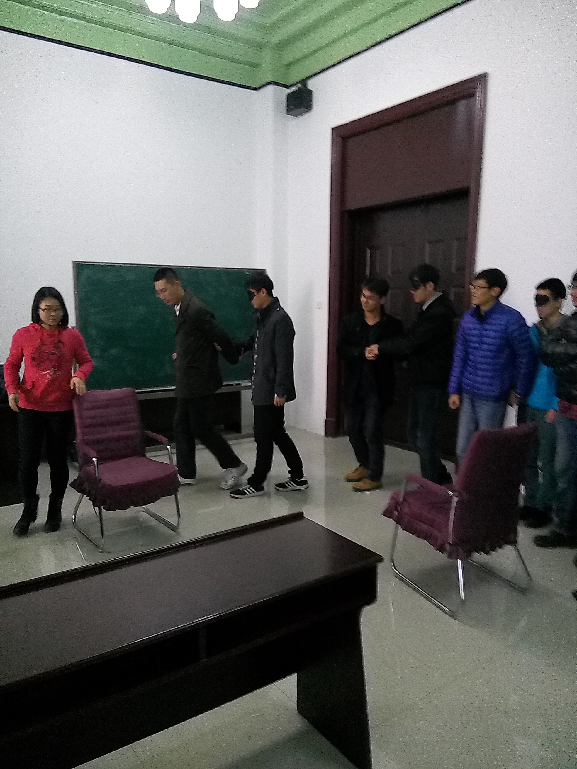为了使2015级新入学研究生在在新环境中建立起心理支持系统,增强团体凝聚力,丰富研究生课余生活,促进班级成员的相识,建立互信。本次活动主要是组织学生开展团体心理辅导的实践体验。在实践体验中,通过 “1分钟热烈欢迎”、“无家可归”、“温柔体操”的游戏环节是同学们消除了戒备感,“信任之旅”、“集体登陆”、“快乐传递”等心理游戏,充分调动同学们的积极性和主动性,促进同学之间的相识和交流,快速建立基本信任感,使参加活动的同学们学会了如何相互欣赏,体会团队之间的协调与配合,从而提升班级凝聚力。同时,也使参加活动的同学们在体验中受到启发,在团体的交流和分享中获得感悟和提升。