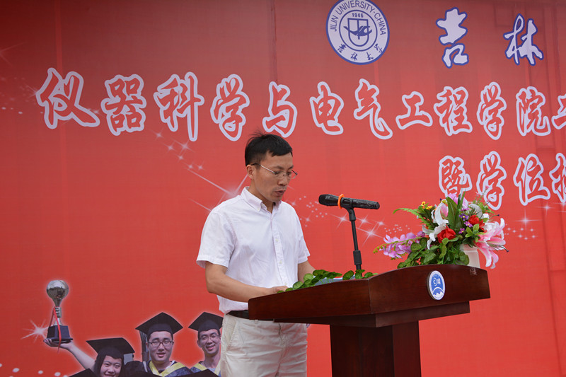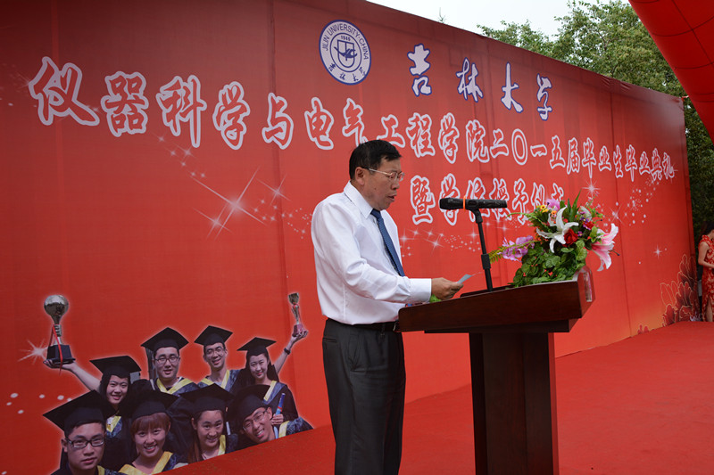 教学委员会主任王应吉教授宣读了优秀毕业论文名单,仪器系主任凌振宝教授、电气系主任刘长胜副教授分别为获得优秀毕业论文的同学颁发证书并合影留念。之后,教师代表王应吉教授和2015届毕业生代表、黑料不打烊