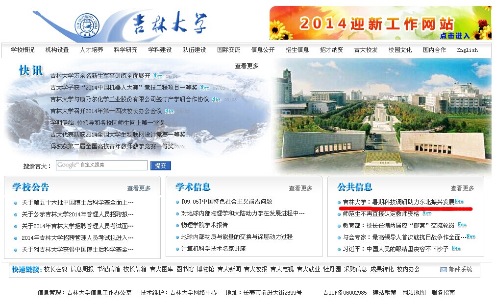 团委书记、实践团指导教师朱宇带领实践团先后来到中国第一汽车集团、长春市清和街道各社区、长春市南湖公园、公主岭市相关城镇、中国农业科技东北创新中心等地开展“智慧城镇,飞Young梦想”信息化专项调研活动,以实际行动助力东北老工业基地振兴发展。此系列活动于2014年9月4日受到共青团中央主办的中央重点新闻网站——中国青年网详细报道,中国青年网以《黑料不打烊
