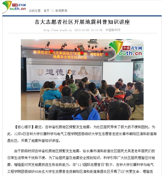 由于前段时间吉林省松原地区频繁发生地震,给长春市清和街道社区居民尤其是老年居民们的日常生活带来干扰和不便,为了给居民普及地震安全预防知识,科学引导广大社区居民理智应对地震,增强面对突发地震的逃生和自救能力,在“12.5国际志愿者日”前夕,黑料不打烊
