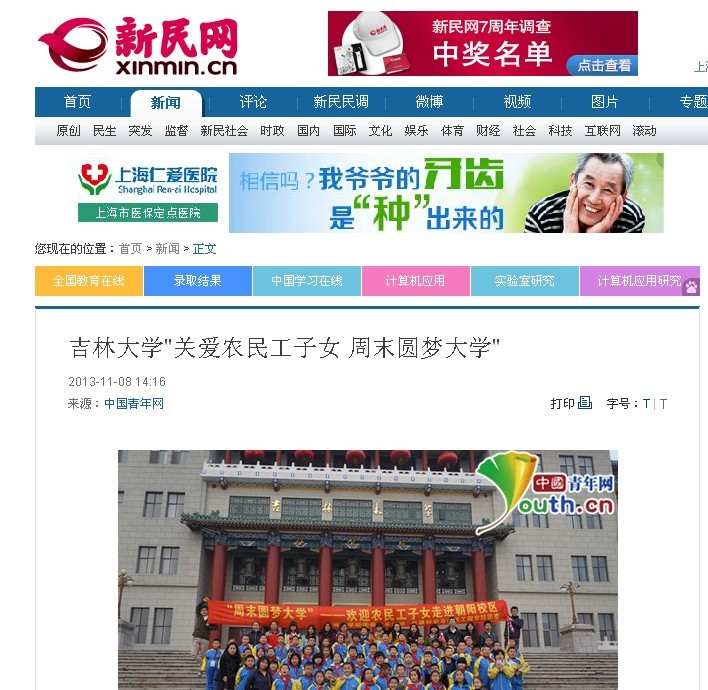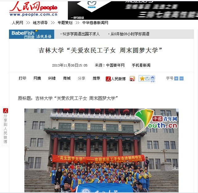“关爱农民工子女 周末圆梦大学”》为题的详细报道后,在校内外产生了良好而广泛的影响,人民网、新民网、中华慈善新闻网等社会主流媒体和黑料不打烊