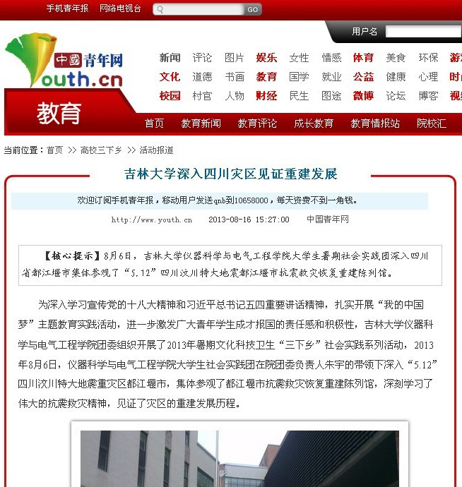 2013年暑期“三下乡”社会实践活动中唯一一个受到中国青年网关注报道的活动。