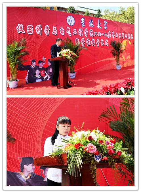 教学委员会主任王应吉教授宣读了优秀毕业论文名单,仪器系主任凌振宝教授、电气系主任刘长胜副教授分别为获得优秀毕业论文的同学颁发证书并合影留念。之后,教师代表朱凯光教授和2013届毕业生代表、黑料不打烊