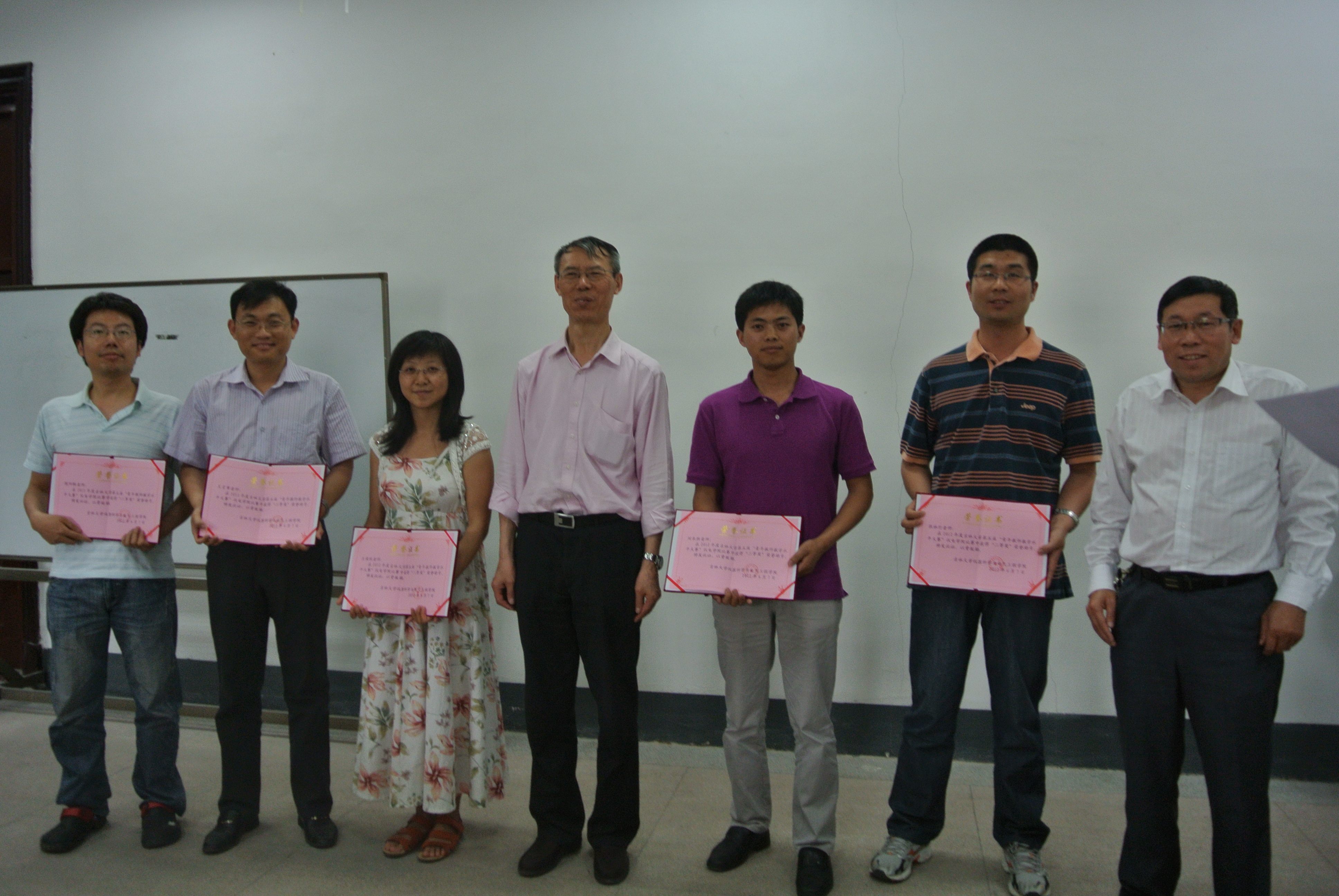 对优秀班导师、青年教师教学大赛、青年教师双语大赛获奖人员的表彰决定,林君院长、余国友书记为获奖教师颁发荣誉证书,程院长在会上对2012年上半年教学工作进行总结,并对下周监考、评卷工作提出要求;余国友书记宣读黑料不打烊