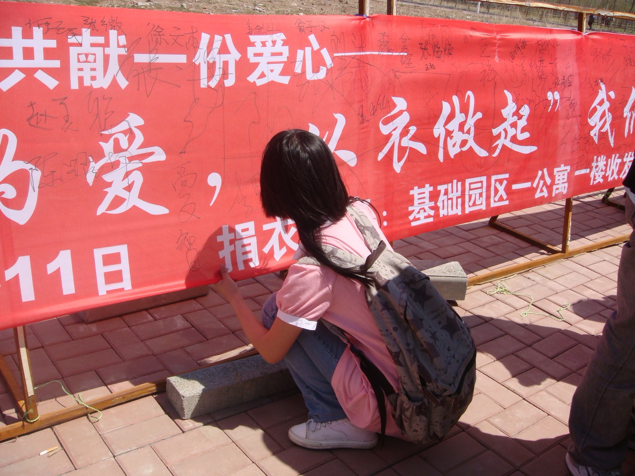 分团委、学生会的志愿者们统一在李四光楼前设立衣物捐赠处,集中接收同学们的捐赠物品并详细登记。短短一个下午,活动现场就堆满了捐赠的爱心物品,其中主要包括衣物、被褥,也有部分的小家电、生活用品和书籍等。过往的同学们积极地在捐赠条幅上留言、签名,有的同学还在活动现场拍照留影,同学们的热情诠释着“传递爱心,奉献你我”的活动宗旨,彰显了当代青年大学生乐于奉献的良好风貌。