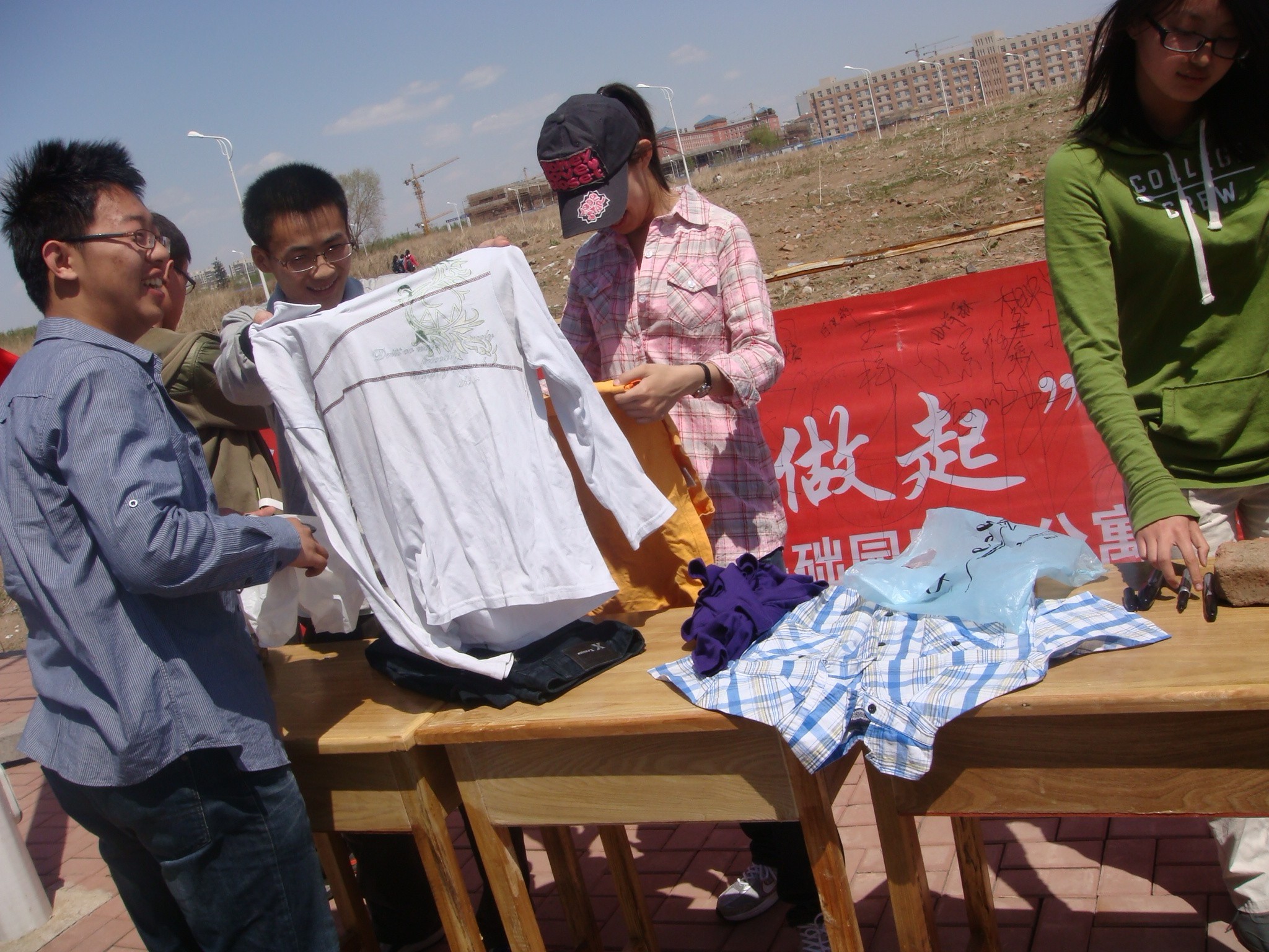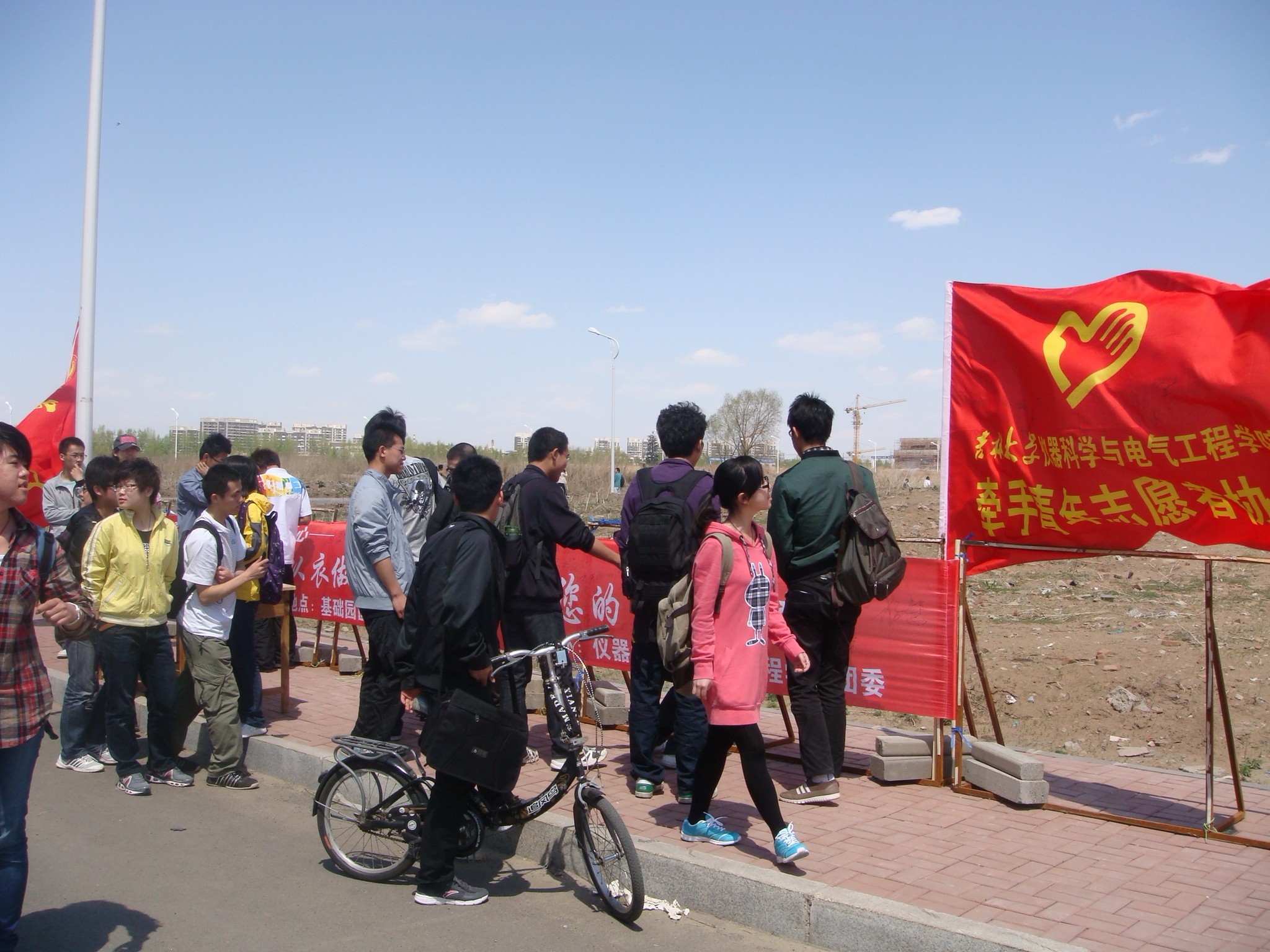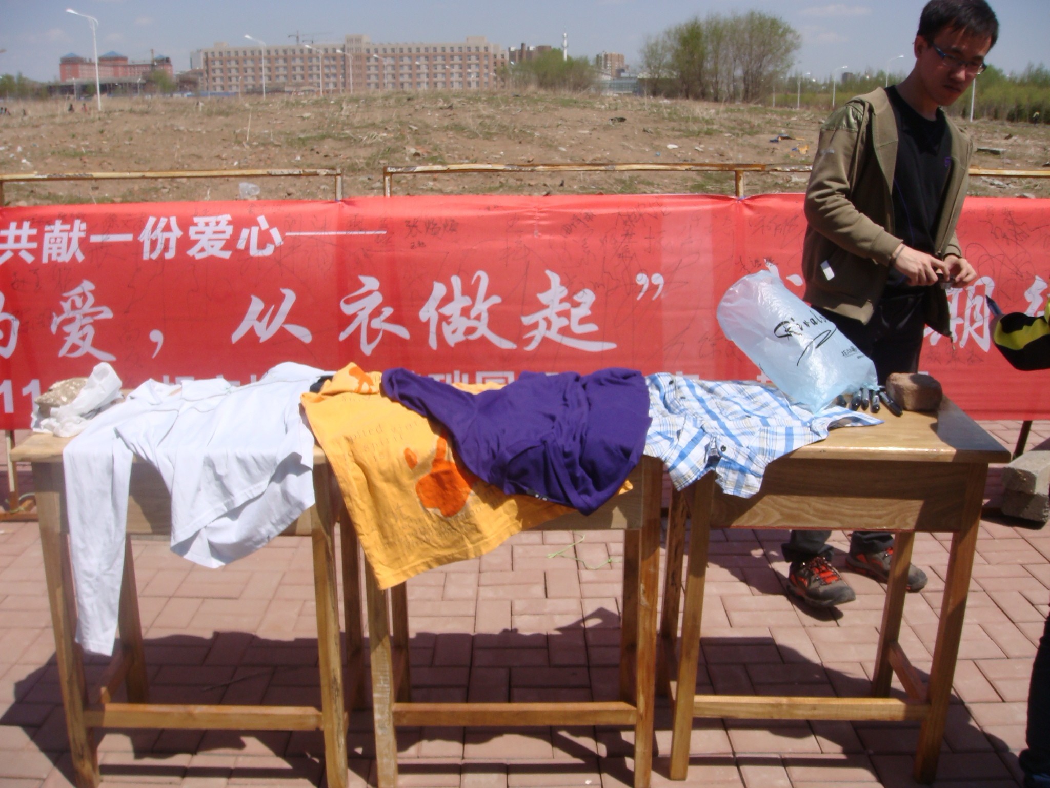 团委携手吉林省慈善总会于2012年5月4日在中心校区李四光教学楼前正式启动了“细微的爱,从衣做起”——爱心衣物捐赠活动。