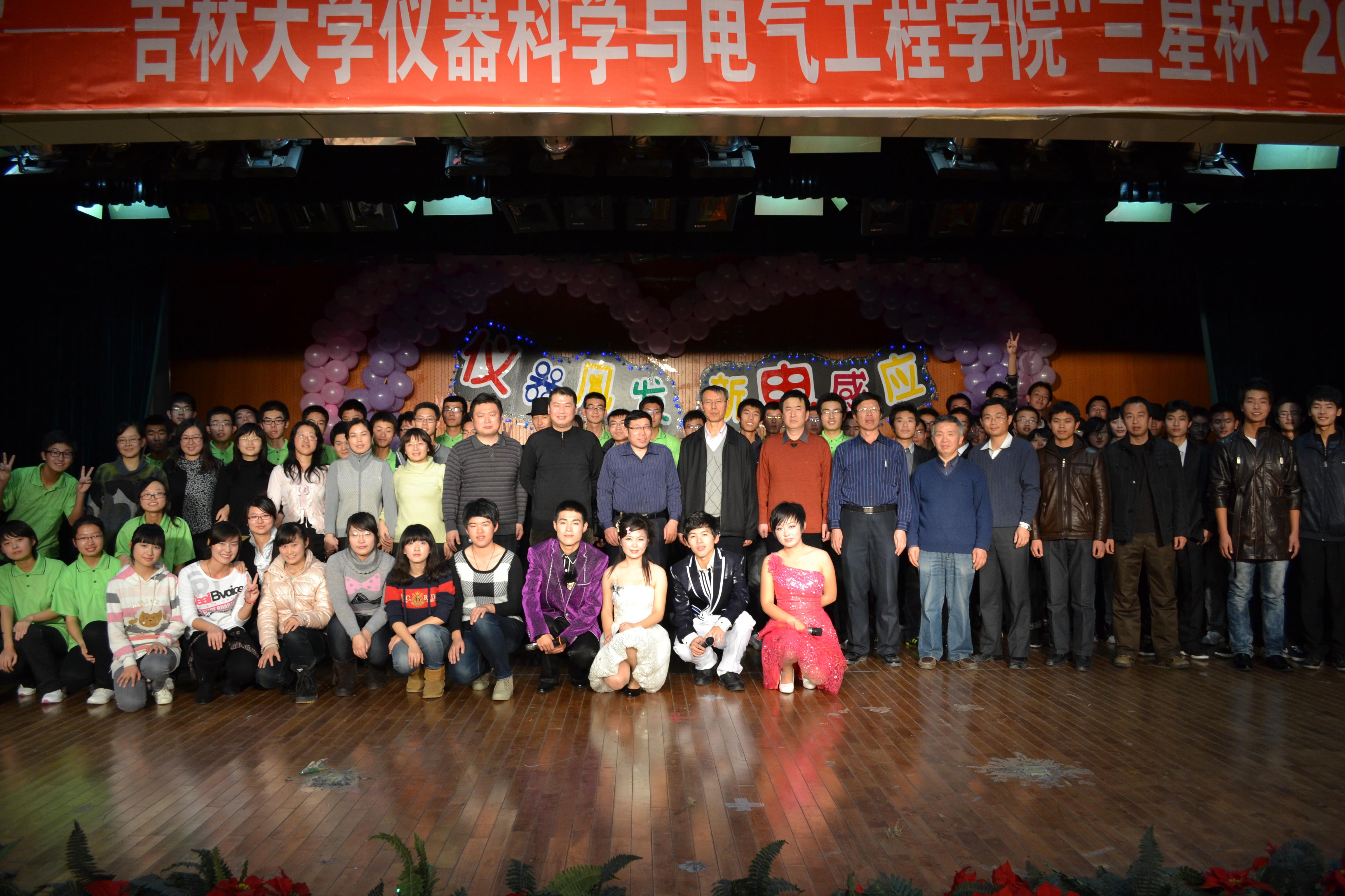 领导和各班班导师进行了互动抽奖环节,充分调动了现场同学和老师的积极性。之后的小品《非诚勿扰》、街舞表演《Show Time》又一次次点燃现场观众的热情,将晚会气氛推向又一个高潮。话剧表演《时光如水,岁月如歌》以场景形式回顾了中华民族近一百年来经历的风风雨雨、沧桑巨变,展现了中华儿女对自由、民主和理想矢志不渝的追求。晚会在慷慨激昂、振奋人心的大合唱《走向复兴》中缓缓落下帷幕,领导老师们走上舞台与全体演职人员合影留念,现场温馨愉快、其乐融融的氛围让2011全体新生感受到仪电黑料不打烊