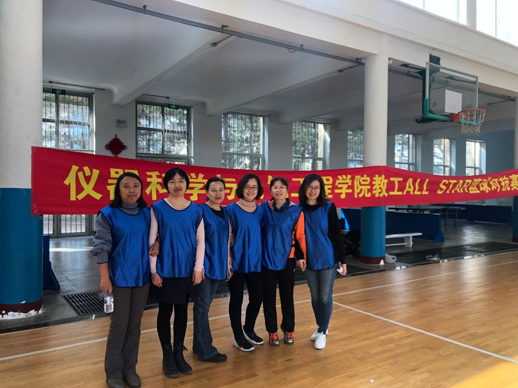 首先进行的是投篮大赛,参加选手为各工会小组的女同志,每个工会小组派5名女老师参赛。比赛前,女子组进行着紧张的热身,选手们在球场上不停地投篮找“手感”,男老师们在一旁毫不吝啬地给选手纠正不规范的动作,在一片加油声呐喊声中。工程中心与行政工会小组联队最终获得“定点投篮”第一名,电气系工会小组与仪器系工会小组获得并列第二名,实验中心工会小组获得第三名。
