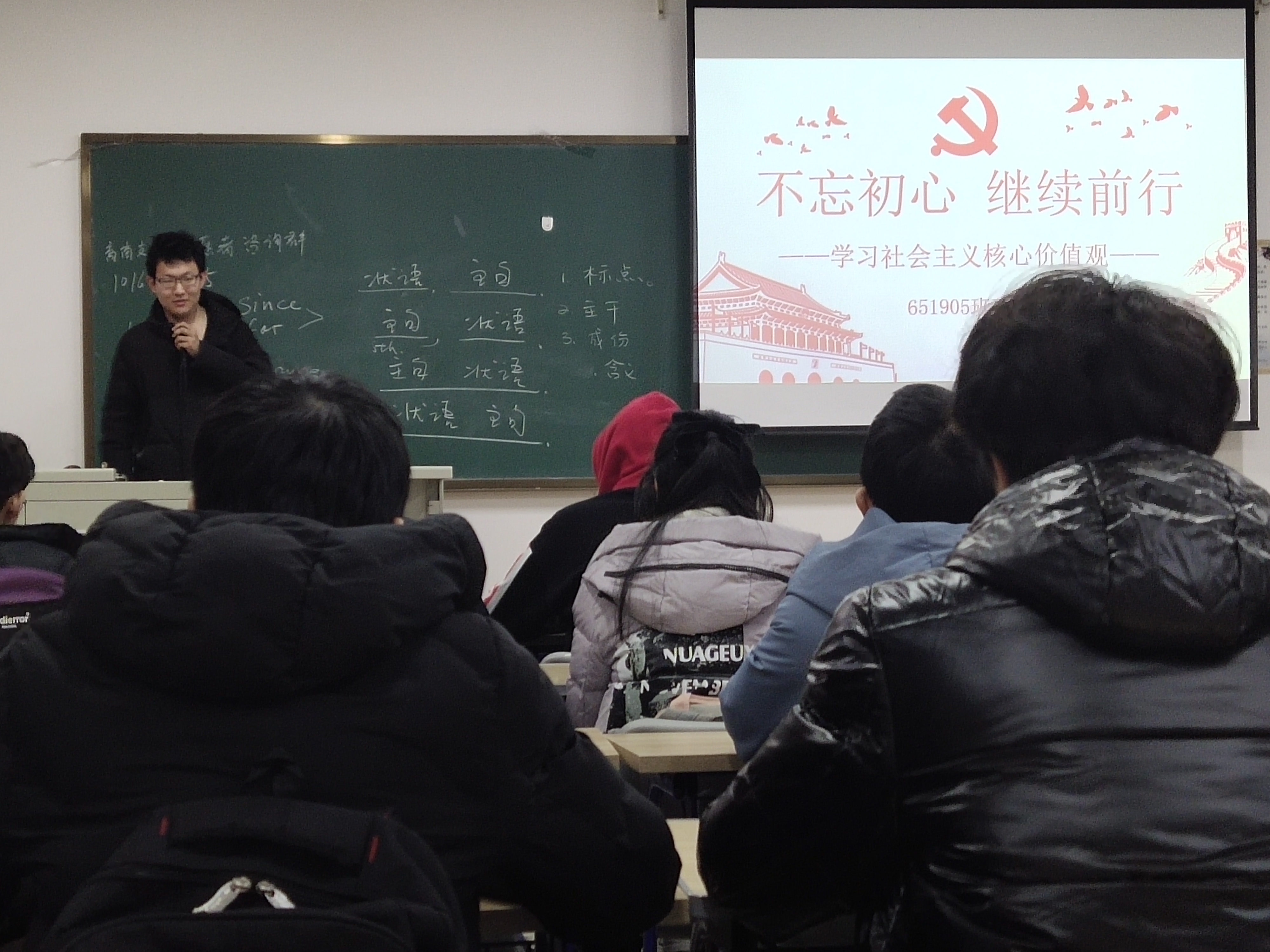 651905班同学于李四光楼113教室举行了主题为“不忘初心,继续前行”的团日活动班会。