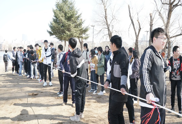 在结束清明踏青活动后,同学们于南湖内的长春冬泳沙滩上进行了拔河活动。19级同学和20级同学分为两组,进行了拔河比赛,活动氛围浓厚热烈,在双方同学激烈的呐喊中,19级同学稍逊一筹,20级同学取得了胜利。拔河活动结束后,同学们又进行了两轮丢沙包活动,由4名同学位于两侧,中间的同学进行躲避和丢沙包,最后活动在同学们的一片欢声笑语中顺利结束。