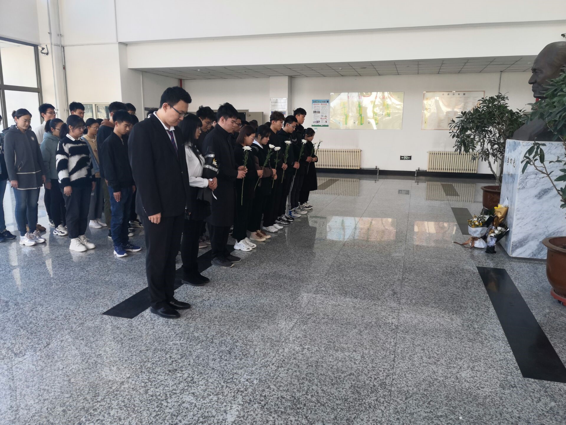 组织青年学生分别前往李四光纪念雕像和黄大年纪念雕像开展清明祭扫活动。
