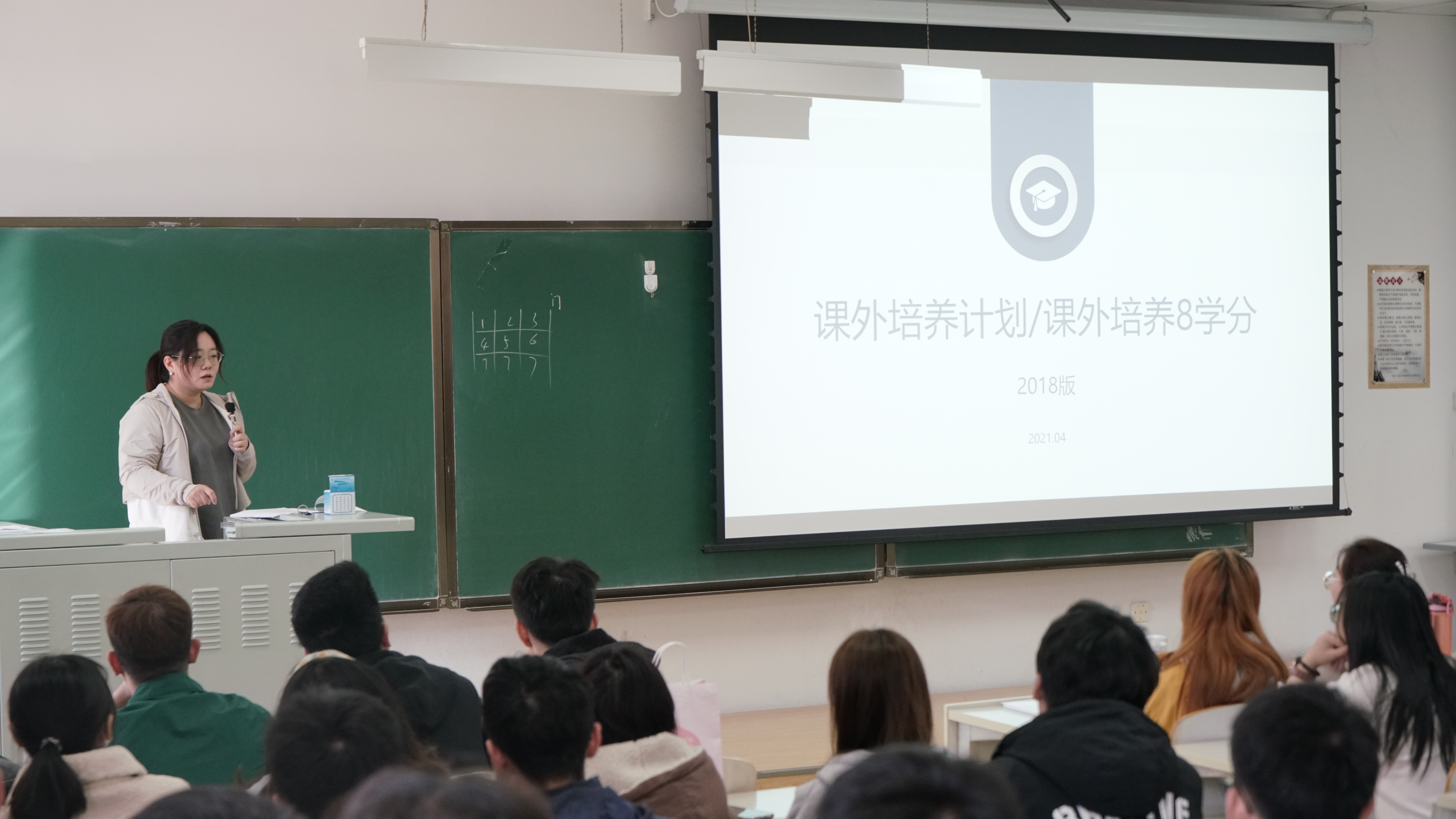 2018版课外培养计划逐条详细地介绍了每条学分所对应的项目以及得分的明细。在介绍的过程中老师还具体举例,向同学们介绍了每条学分设置的内在逻辑和其想要培养同学的能力,希望同学们能认真对待,在完成培养计划的过程中得到成长。