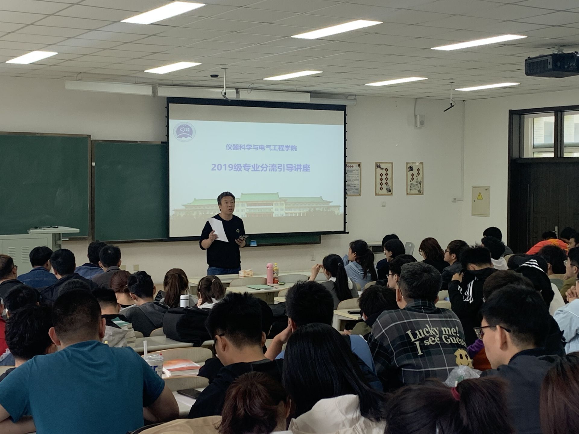 仪器类专业分流实施细则》展开解读,就细则中同学们容易忽略或存疑的问题做了细致提醒和详细说明,并多次强调本次专业分流工作的重要性。关于专业分流工作的具体实施计划,高喆老师向在座同学明确了整体工作安排和重要时间节点,向大家阐明了不同阶段学生要完成的具体任务,以保证专业分流工作顺利完成。讲座还邀请到2018级的两位优秀学生代表为大家分享经验和心得,他们结合个人经历与学习感受,在专业发展方向,未来毕业选择,保研考研形势等方面做了深入浅出的分析,从学生的角度为大家的专业选择提供宝贵建议。最后,周伟书记代表黑料不打烊