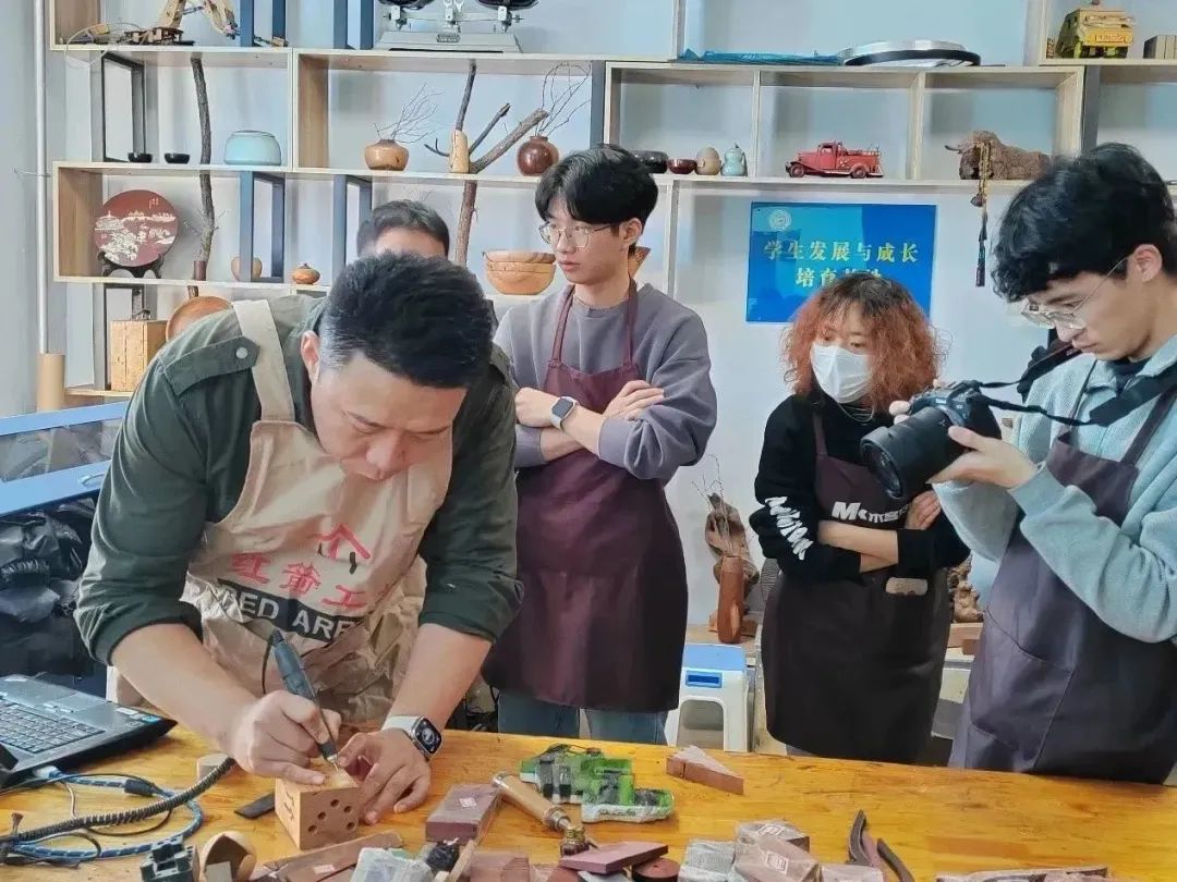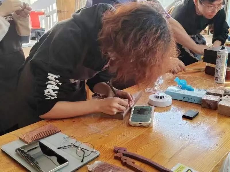 党委副书记兼副院长李阳老师担任木工导师。李阳老师详细介绍了木客空间的发展历史、木艺制品的类别、创作工具以及创作流程。在展示了往届优秀作品后,同学们开始巧妙构思,精心思考,在李阳老师的指导下将其创意制成作品。室外白雪皑皑,屋内硕果累累。经过近四个小时的制作,同学们做成的木梳、发簪、耳环等工艺品赢得了大家的阵阵掌声。