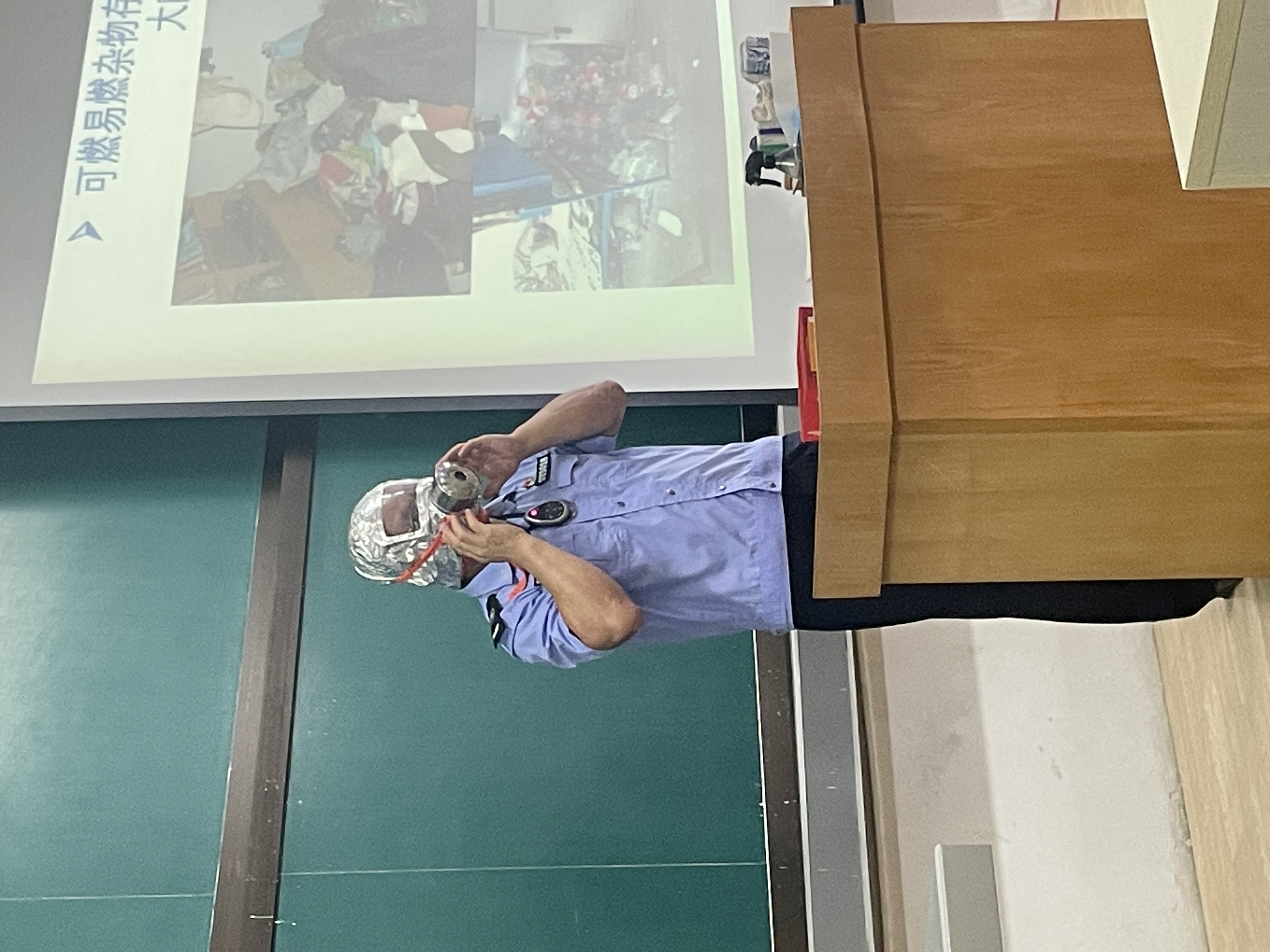 最后,唐老师讲解并演示了不同类型灭火器的使用方法及注意事项。他亲自示范,动作规范熟练。此外,他还现场演示了逃生面具的打开与佩戴方式,详细介绍了逃生面具的使用场景和注意事项。与会研究生纷纷表示,他们学会了消防器材的使用方法,增强了应对险情的能力。