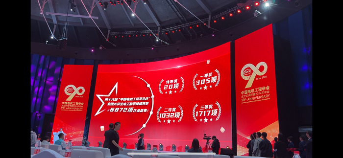 在李刚老师的指导下,队长黄屹毅与队员郝奥星、蔡东在三天三夜的竞赛中,结合课题组相关专业知识的积累,队内分工合作,任务分配明确,对问题进行分析,建立模型,问题假设,最后求解,最后荣获国家级特等奖。10月12日,黄屹毅受邀参加中国电机工程学会成立90周年暨2024年年会开幕式和颁奖仪式。