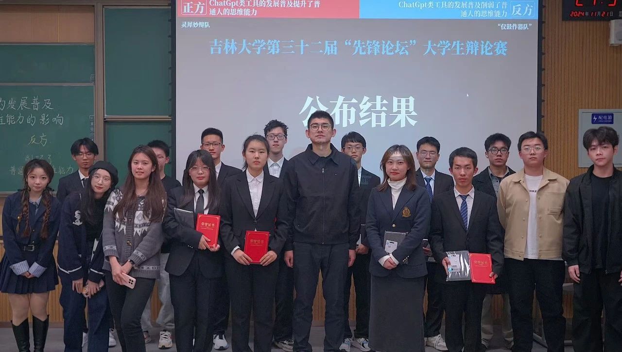 本次比赛辩题聚焦于信息爆炸的当下时代,ChatGpt类工具的崛起。正反方围绕“GhatGpt类工具的发展普及提升了/削弱了普通人思维能力”展开激烈讨论。首先以正反方的自我介绍,主持人对规则的介绍,出席活动的老师和评委介绍为开场。随后辩论赛正式开始,辩手们在立论环节引经据典,聚焦时事,清晰全面地解释辩题,表明观点,对ChatGpt类工具与思维能力提升/削弱,个人的思考能力与创新能力的关系进行了更深入的讨论与思考。在对辩盘问环节,辩手们对于对方出现的逻辑漏洞,进行犀利的提问反驳,激烈精彩,比赛气氛迅速升温。在最为精彩的自由辩论环节,正反方对己方的观点逻辑进行更为完善的阐述和论证,对于对方的逻辑矛盾进一步发问反驳。在结辩环节,辩手们用简练的语言总结观点,升华主题,内涵丰富,赢得了观众的阵阵掌声。