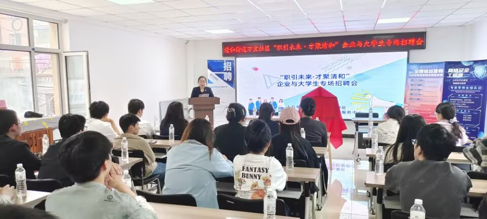 及辖区重点企业,于5月24日13点30分在社区党群服务中心成功举办了“职引未来·才聚清和”校企专场招聘会。活动通过“岗位+技能+政策”三位一体的服务模式,为高校毕业生和辖区未就业青年搭建了高效便捷的就业平台,吸引了50余名学生参与。