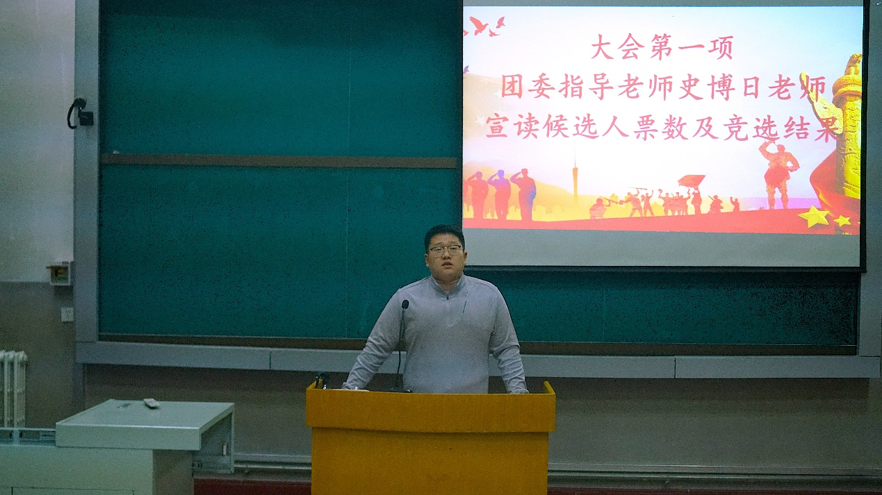 第三次会议初始,团委指导教师史博日老师宣读候选人得票数及竞聘结果。