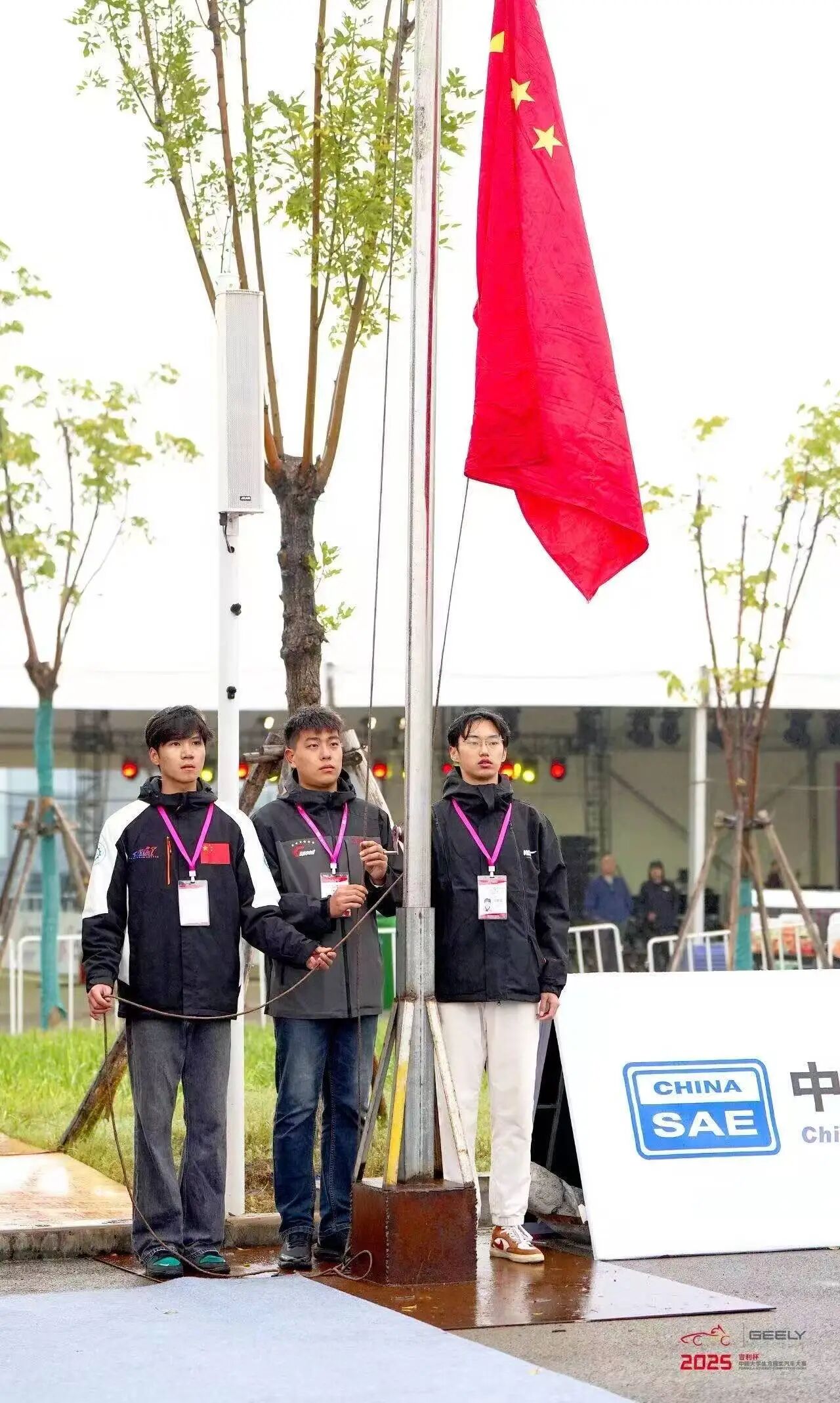 2025年10月8日,再次奔赴郑州参加2025“吉利杯”中国大学生方程式汽车大赛。针对雨战凭借扎实的专业能力,现场对赛车混合动力系统、车身稳定控制系统、扭矩分配控制系统进行特调,保证赛车在湿滑赛道的稳定性。作为车队主力车手,在其它强队接连做出强势有效圈速时,吴林阳顶住压力最终取得高速避障全场第二的好成绩。在耐久赛中,凭借精湛驾驶技术,将圈速刷新到1.06.625,做出了雨地最快单圈。