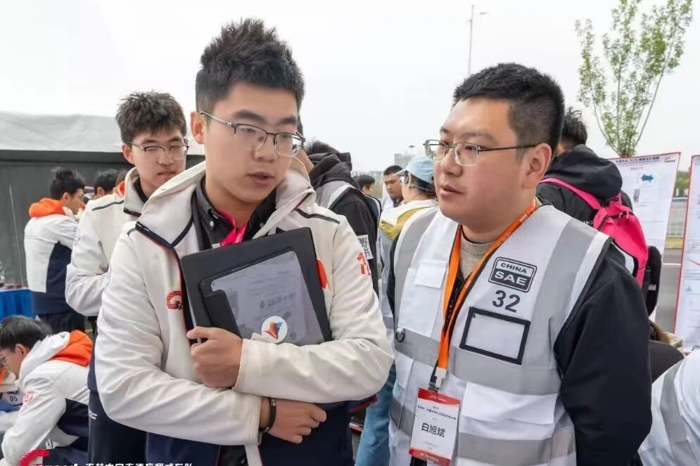 10月8日,他再次启程,奔赴郑州参加“吉利杯”中国大学生方程式汽车大赛。凭借扎实的专业能力,他协助车队高效通过混合动力系统检查,并在设计答辩中深入讲解动力电池的系统设计,赢得了裁判的一致认可。