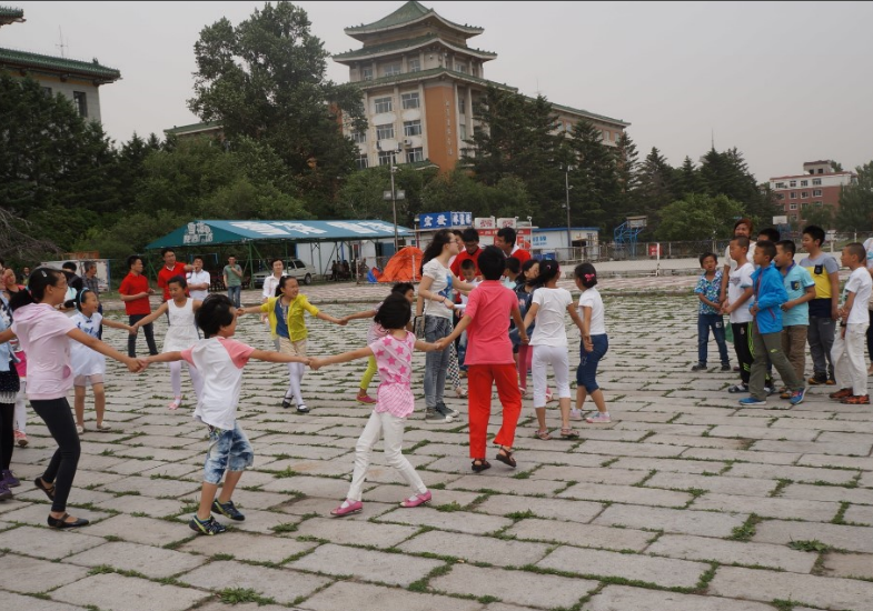 游戏“萝卜蹲”中志愿者与孩子们打成一片,这个游戏很能锻炼思维能力和反应速度,同时不失趣味性和参与性,整个广场上洋溢着欢乐的笑声。在“五毛与一块”中每个人都需要积极拉拢队友,很好地提升了孩子们团队合作和互助共赢的意识,同时,游戏中存在的适当的时间限制也锻炼了他们的反应能力。最后一个游戏“迷宫球”时长达30分钟,对于初学的孩子们并不容易掌握,针对这个情况,志愿者和孩子们一起,分组合作,共同进退,最终找到了出口,紧张又欢乐的游戏中,孩子们深深体会到了心态稳定和冷静分析的重要性。
