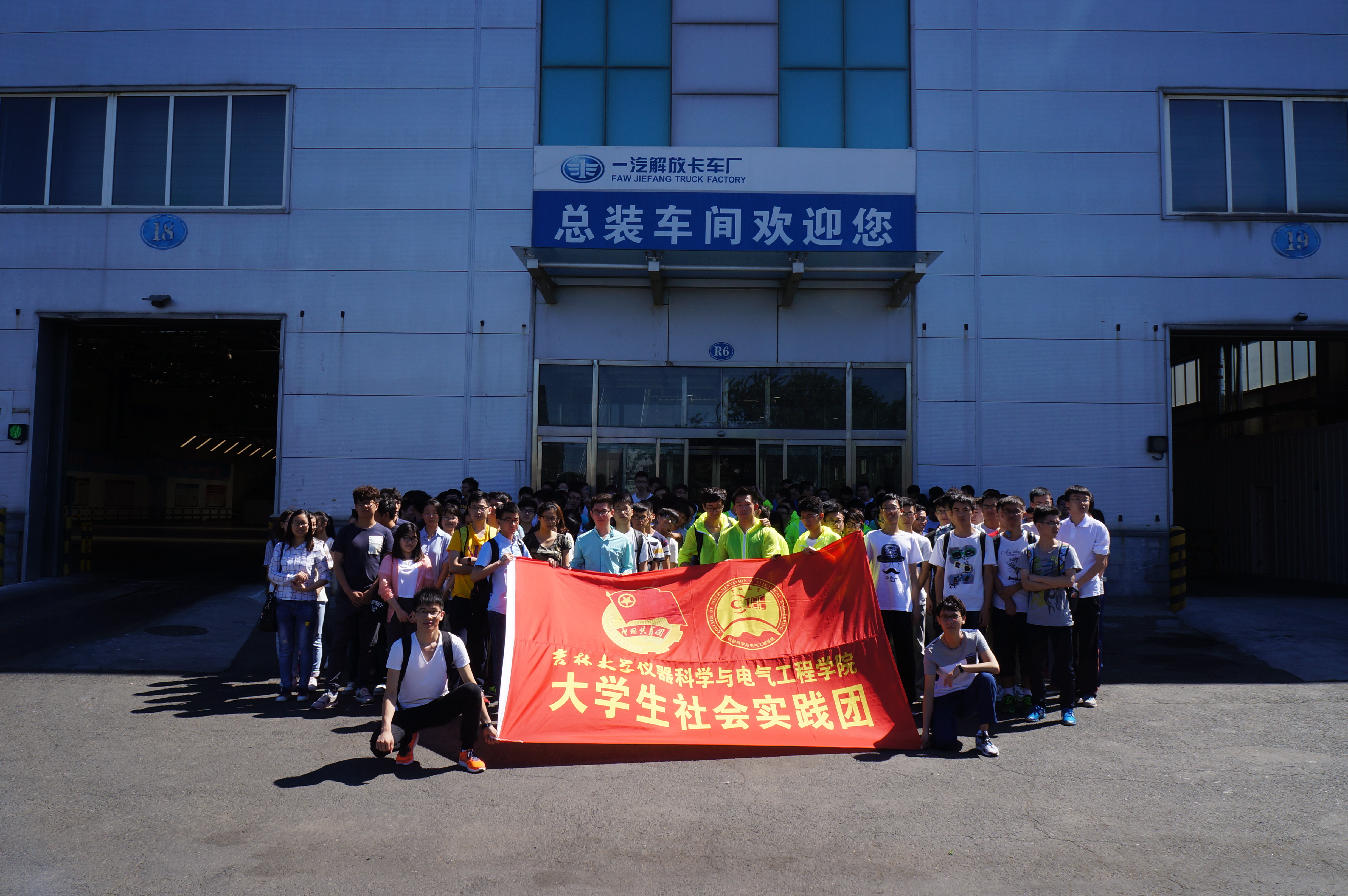 组建科技创新团队于2016年7月4日至2016年9月7日开展“投身十三五共创科技梦”暑期“三下乡”社会实践活动。7月14日早上7点30分,实践团成员来到国内最大的汽车企业集团之一—中国一汽进行参观学习。