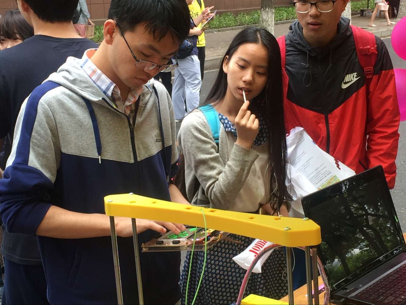 师生和市民朋友,大家都好奇地向科协的同学们提出自己的问题。科协成员一一为大家展示每个作品的功能,耐心地回答大家提出的问题。本次活动还准备了互动环节,各位游客既可以选择列举自己所了解的电子设计领域中常见的10种基本元器件名称,也可以来用DIY电子琴演奏一首自己熟悉的曲目等等。在科协的同学们的提示和帮助下,同学们都在收获新知识的快乐中完成了任务,并都满意地给电子科技协会点了大大的赞。