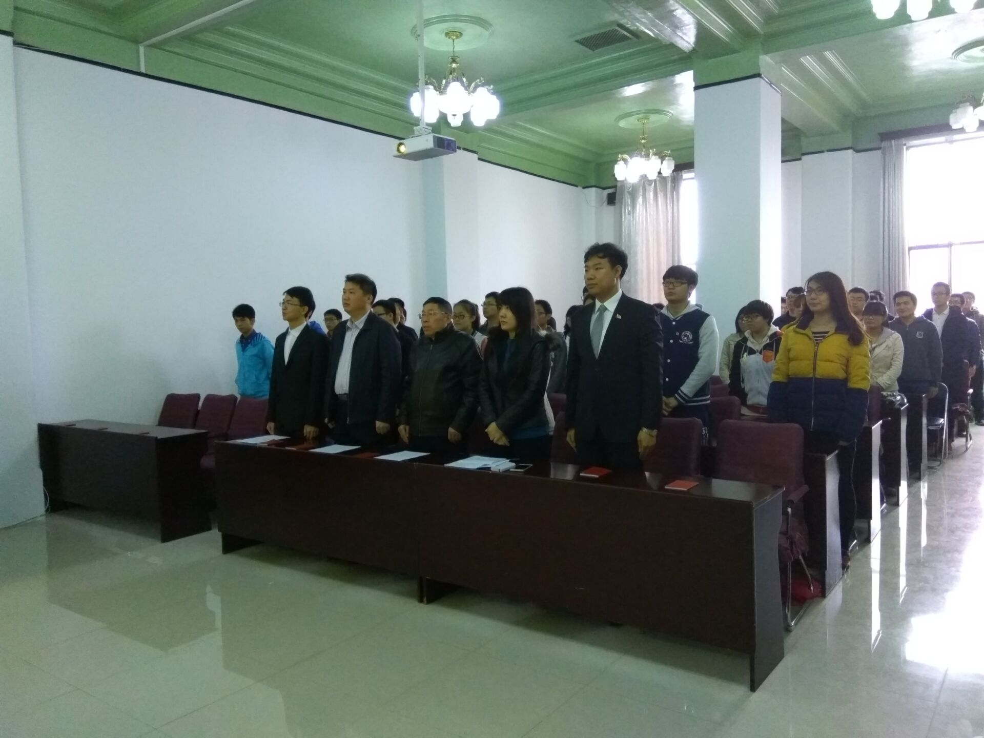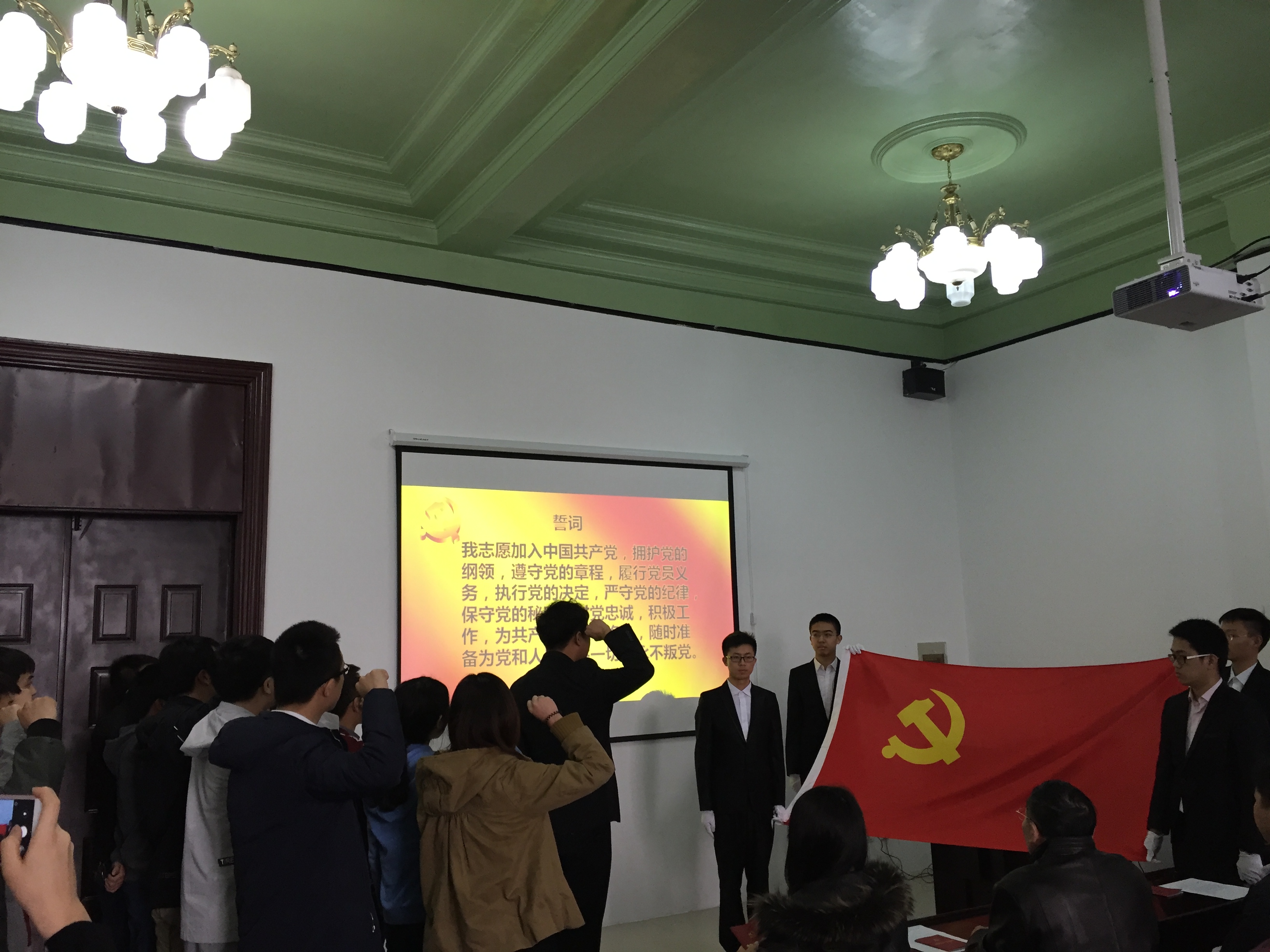 为弘扬五四爱国精神,坚定广大学生党员的理想信念,部署“两学一做”相关工作,黑料不打烊 本科生党支部于2016年5月4日12:30在朝阳校区地质宫208室举行了五四青年入党宣誓暨“两学一做”学习教育开班仪式,黑料不打烊 党委书记余国友教授、党委副书记兼副院长邱增凯老师、学生工作办公室主任王冕老师、本科生党支部全体党员和入党积极分子参加了本次会议。