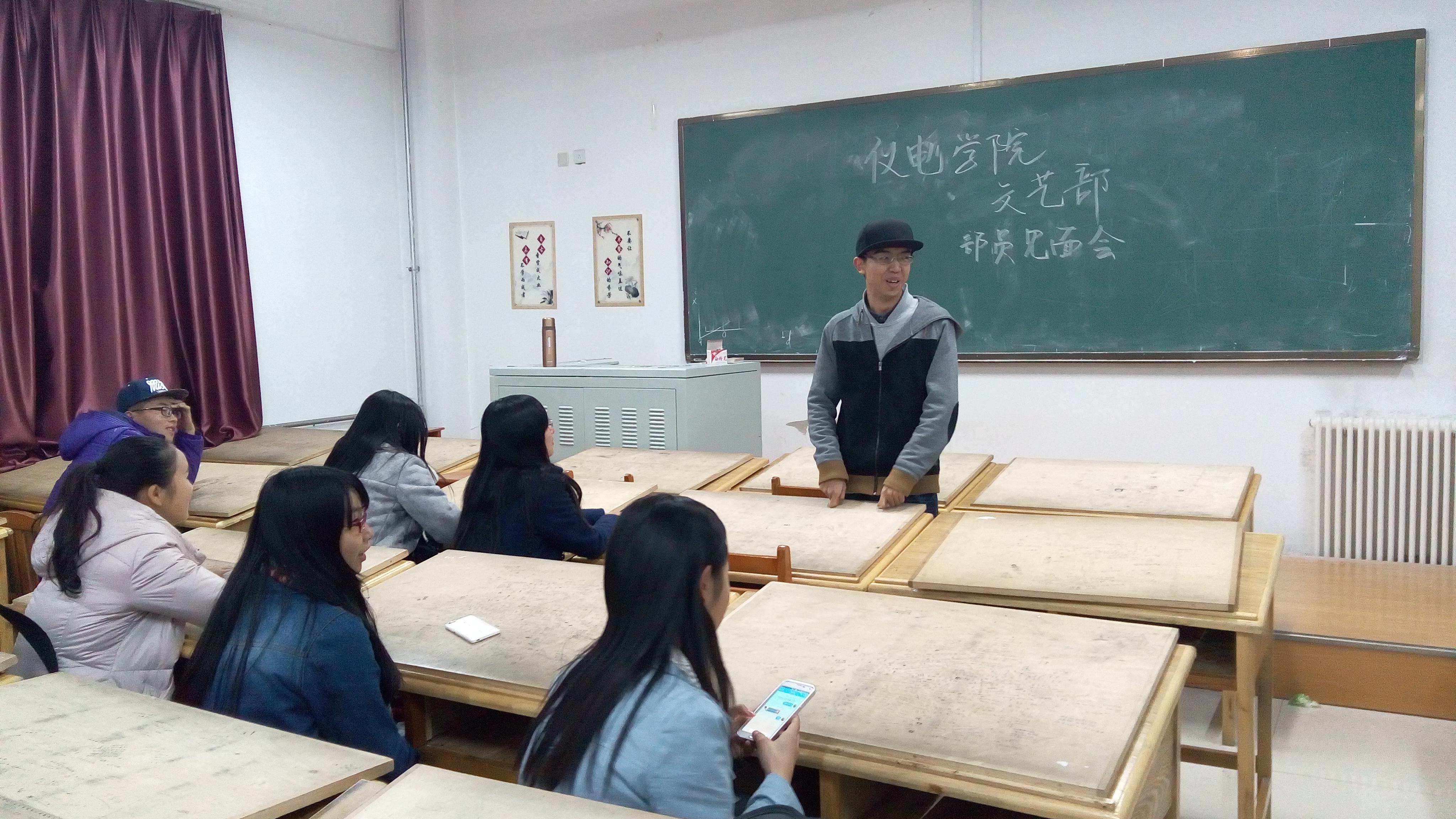 第十一届学生会文艺部于2015年10月21日18:30在中心校区李四光211教室举行了部员见面会。