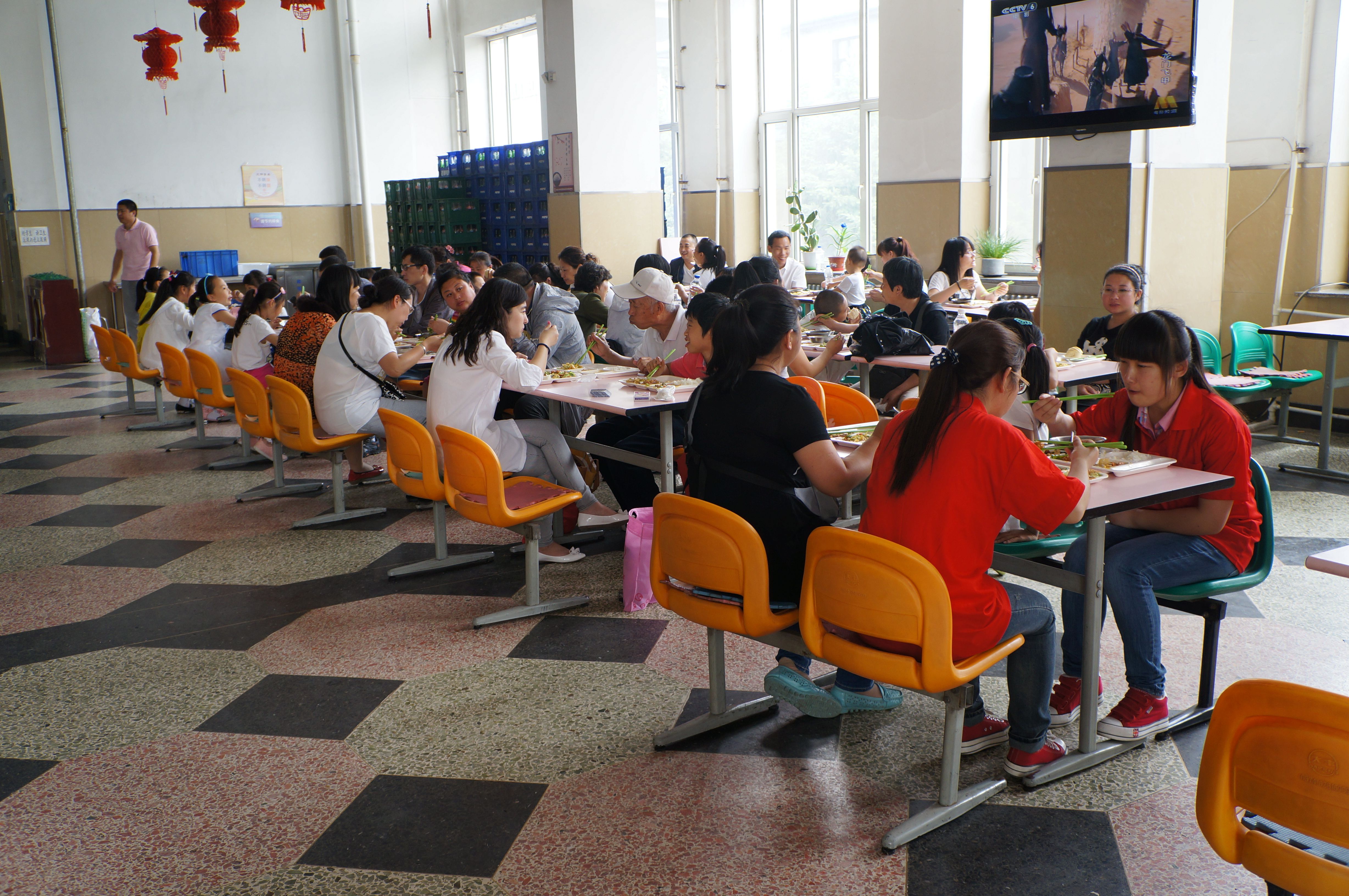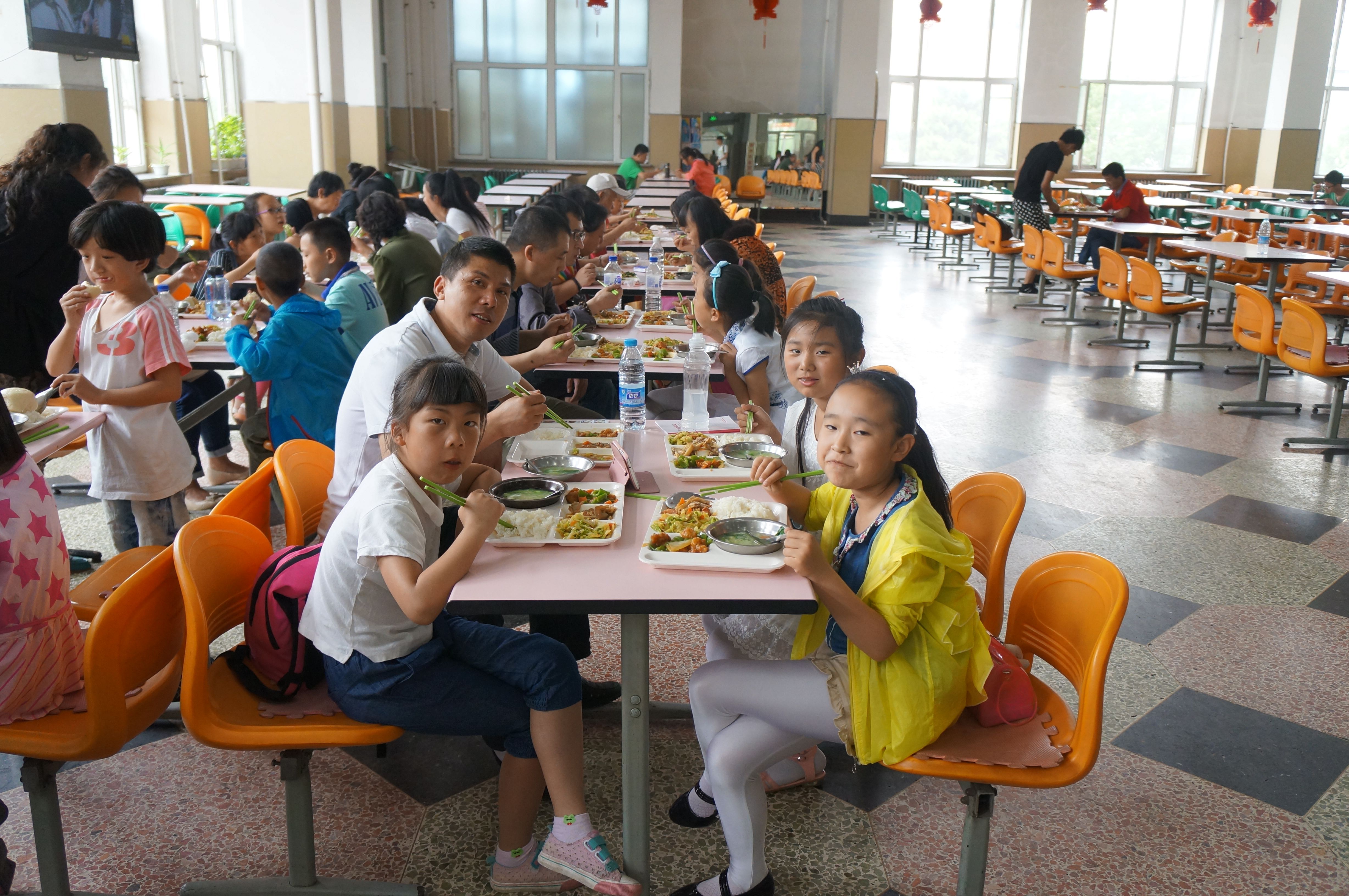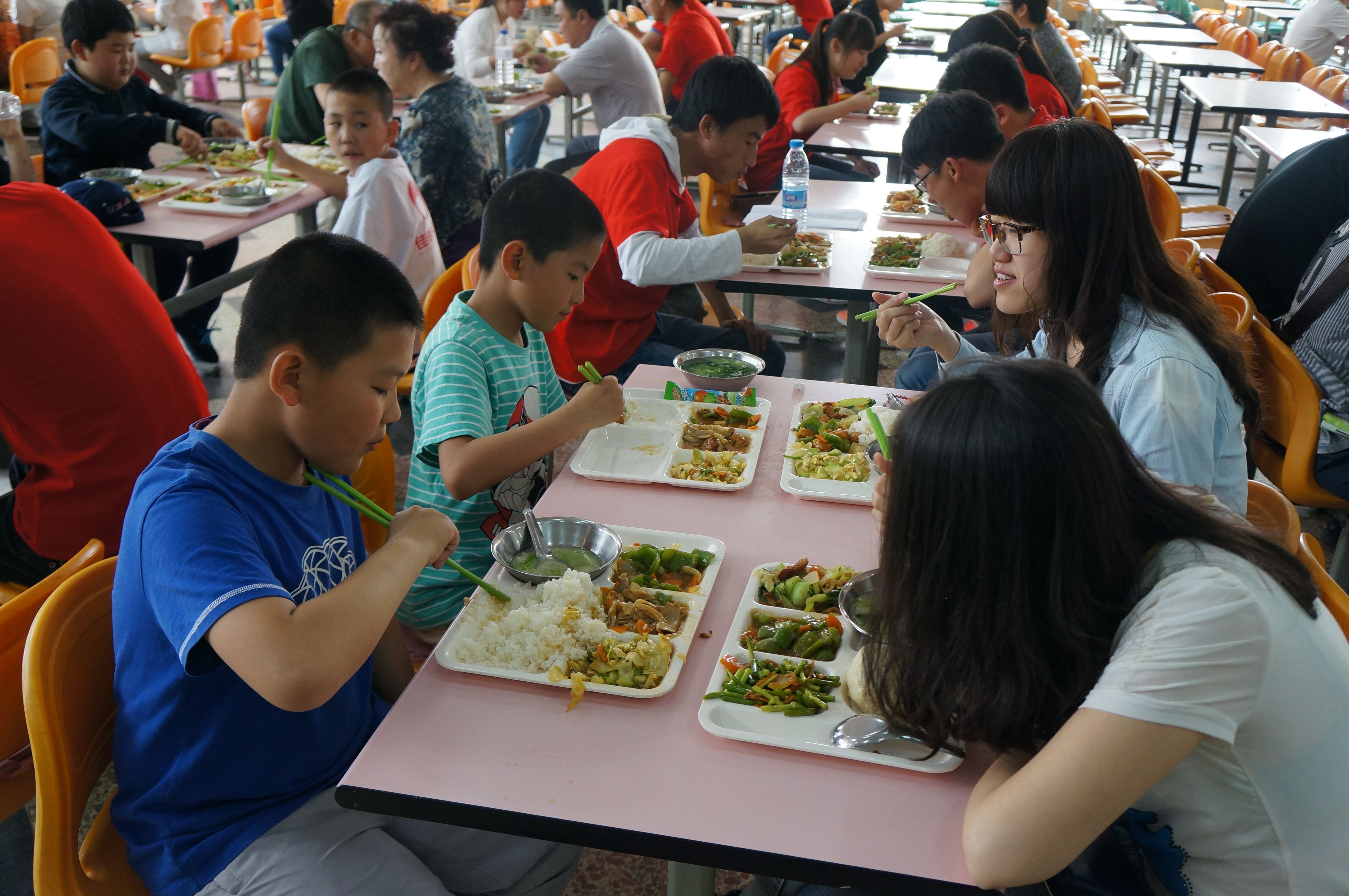 的大学生志愿者们带领来自长春市安达小学的38名学生以及他们的家长在朝阳校区食堂开展了爱心共享午餐活动。