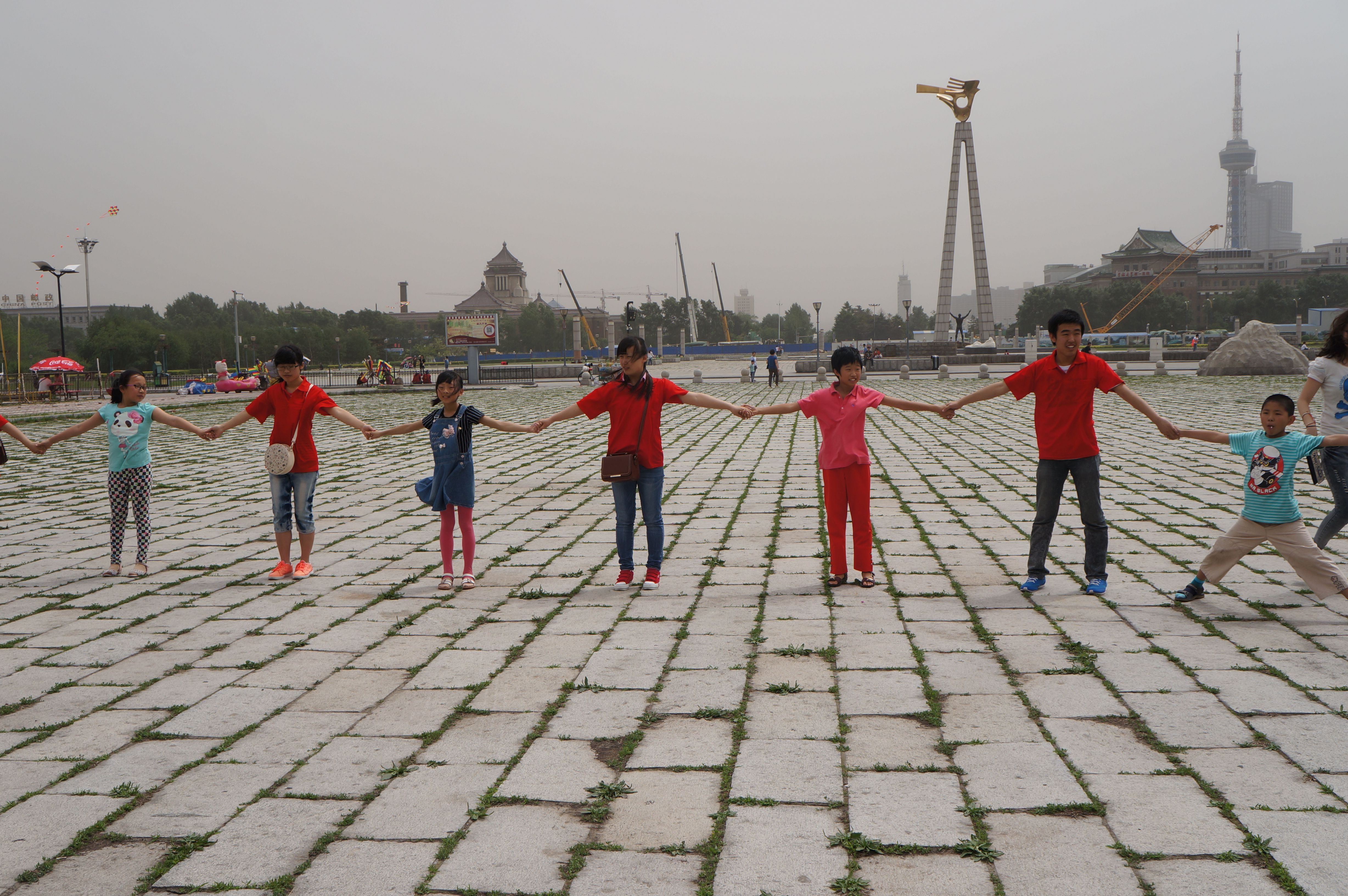 大学生志愿者们的带领下在文化广场地质宫门前开展了“双手托起希望,周末圆梦大学”素质拓展活动。