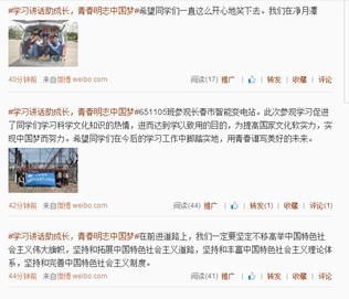 651105班团支部在新浪微博平台开展了“学习讲话助成长,青春明志中国梦”专题学习研讨活动,班级全体成员参与了此次活动。
