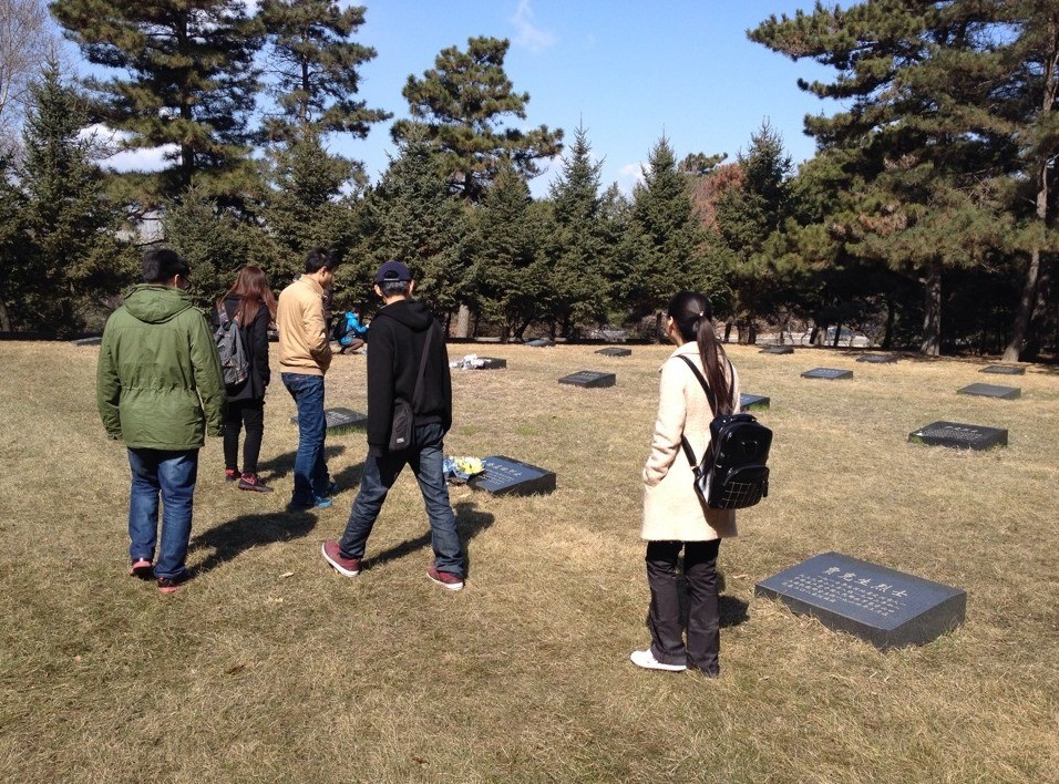 部分2012级及2013级大学生志愿者在志愿服务部负责人的带领下来到了九龙源烈士公园。志愿者们怀着无比崇敬的心情,携带着献给烈士的花圈和鲜花,到达九龙源烈士公园之后,活动负责人宣布扫墓仪式开始,在简单介绍了清明节的历史及内涵之后,由学生代表带领大家宣誓,并献上花圈。之后全体同学面向英烈纪念碑默哀一分钟。此时正入春不久,天气十分寒冷,大家的手和脸都暴露在冷风中,冻得有些麻木。但凛冽的寒风中,所有人都始终保持笔直的站姿,向先烈们致以崇高的敬意。献花与默哀活动结束后,同学们在陵园负责人的带领下参观了整座陵园,认真聆听了陵园负责人对故去先烈们的先进事迹的讲述,对革命烈士的英雄事迹和爱国主义精神的内涵有了更深刻的认识,大家纷纷表示,要学习革命前辈的先进事迹与宝贵精神,不断进取,努力奋斗成为国家的栋梁之才。