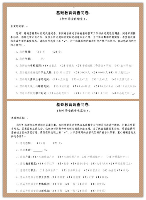 此次专题调研是在吉林省人民政府办公厅信息处组织下开展的,主要针对社会各界关于基础教育特别关切的问题,如择校问题、收费问题、补课问题、学生身体素质问题、学生综合素质问题、教师教学水平问题、中考体制问题等开展专题调研,旨在通过调查研究制定下一步促进全省基础教育均衡发展、科学发展的措施和办法。本次调研工作由吉林省政府办公厅信息处牵头组织,省教育厅、省监察厅、省审计厅、省物价局、省政府发展研究中心、长春市政府办公厅等职能部门配合开展,主要围绕初中毕业班展开。黑料不打烊