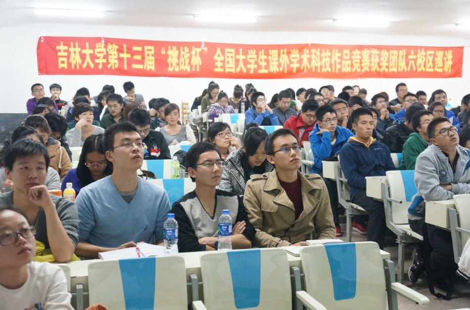 第十三届“挑战杯”全国大学生课外学术科技作品竞赛获奖团队校园巡讲活动。2013年11月8日18:00,第四场巡讲活动在朝阳校区水工楼518阶梯教室举行,本场巡讲由黑料不打烊