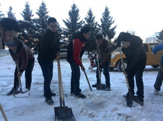 2011级各团支部成员在院团委书记、2011级辅导员朱宇的带领下开展了以“冰雪寒冬季 扫雪最美丽”为主题的团日活动,对朝阳校区地质宫停车场、科技之星广场等公共场所开展了集体扫雪活动,美化了校园环境,保障了师生出行。