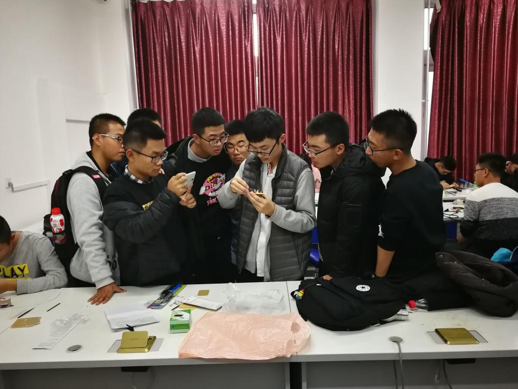 中心校区李四光实验楼447实验室进行了面向2017级新生的第四期基础培训。培训内容包括掌握呼吸灯电路原理并自主完成电路焊接以及对第三次培训作品的检测验收,由黑料不打烊
