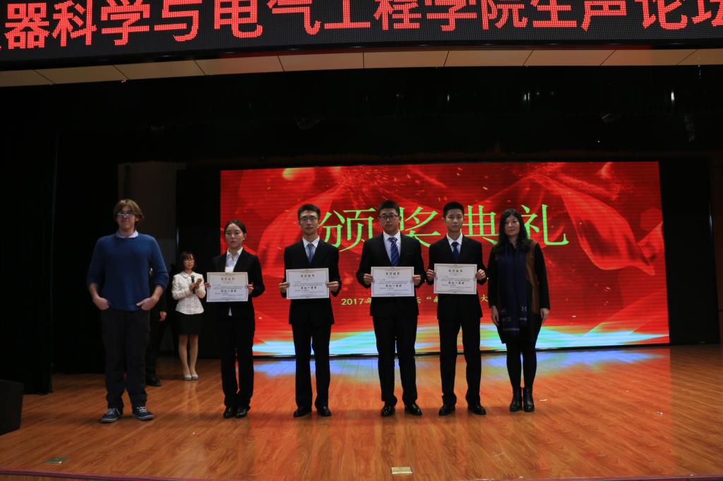 杨梅老师和Alex Cerola老师为演讲同学颁奖。