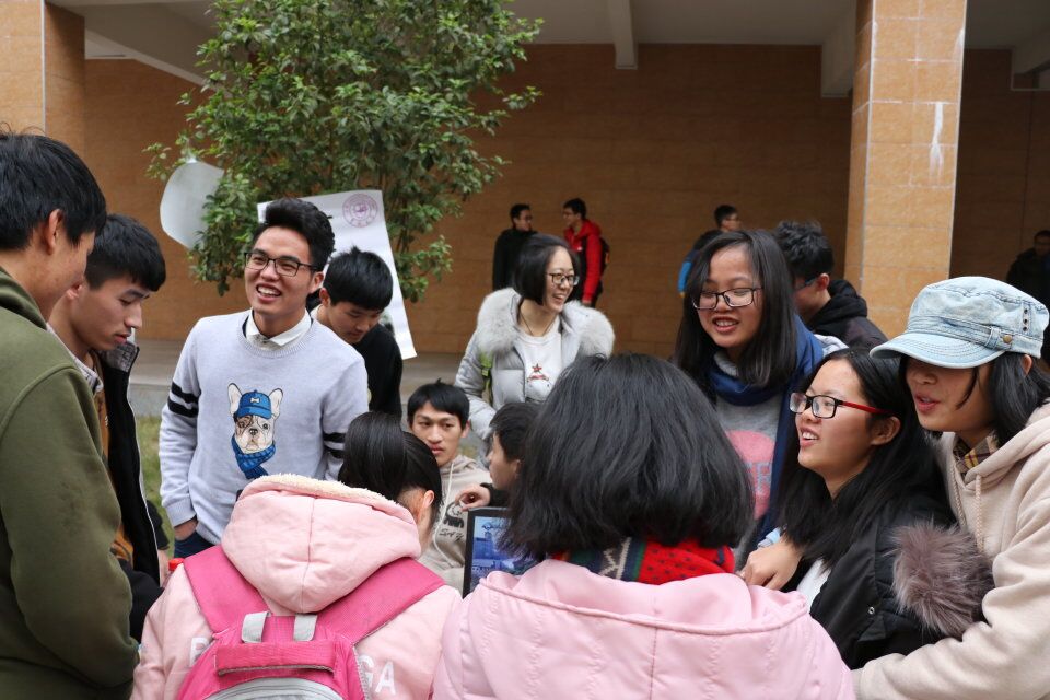 在广西另一所热闹非凡的贵港高中,2018年2月3日罗天玉负责的招生队也来到了高中宣讲,他以幽默的演讲方式,向高三学子们讲解了黑料不打烊
