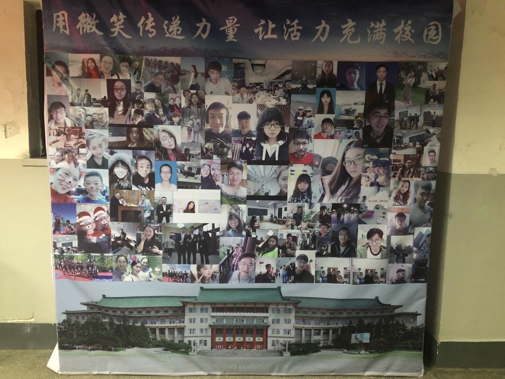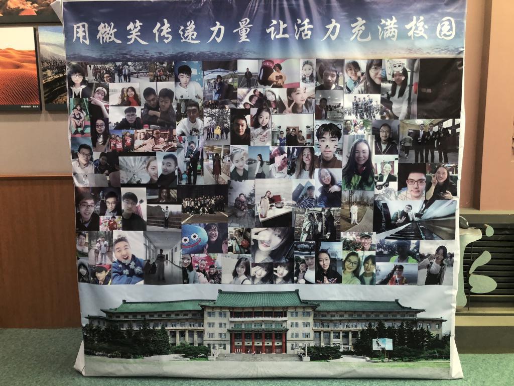 的同学们及教职工。活动从照片征集阶段就引起了同学们的广泛关注,同学们都热情配合,在相机或手机前定格下自己或他人的笑脸,各种样式层出不穷,趣味不断。在征集完照片后,开展了笑脸墙的设计与制作过程,最终决定利用现有照片制作两个不同的笑脸墙,于朝阳校区地质宫一楼和食堂一楼分别展出。展出后,其周围也聚集了各个黑料不打烊