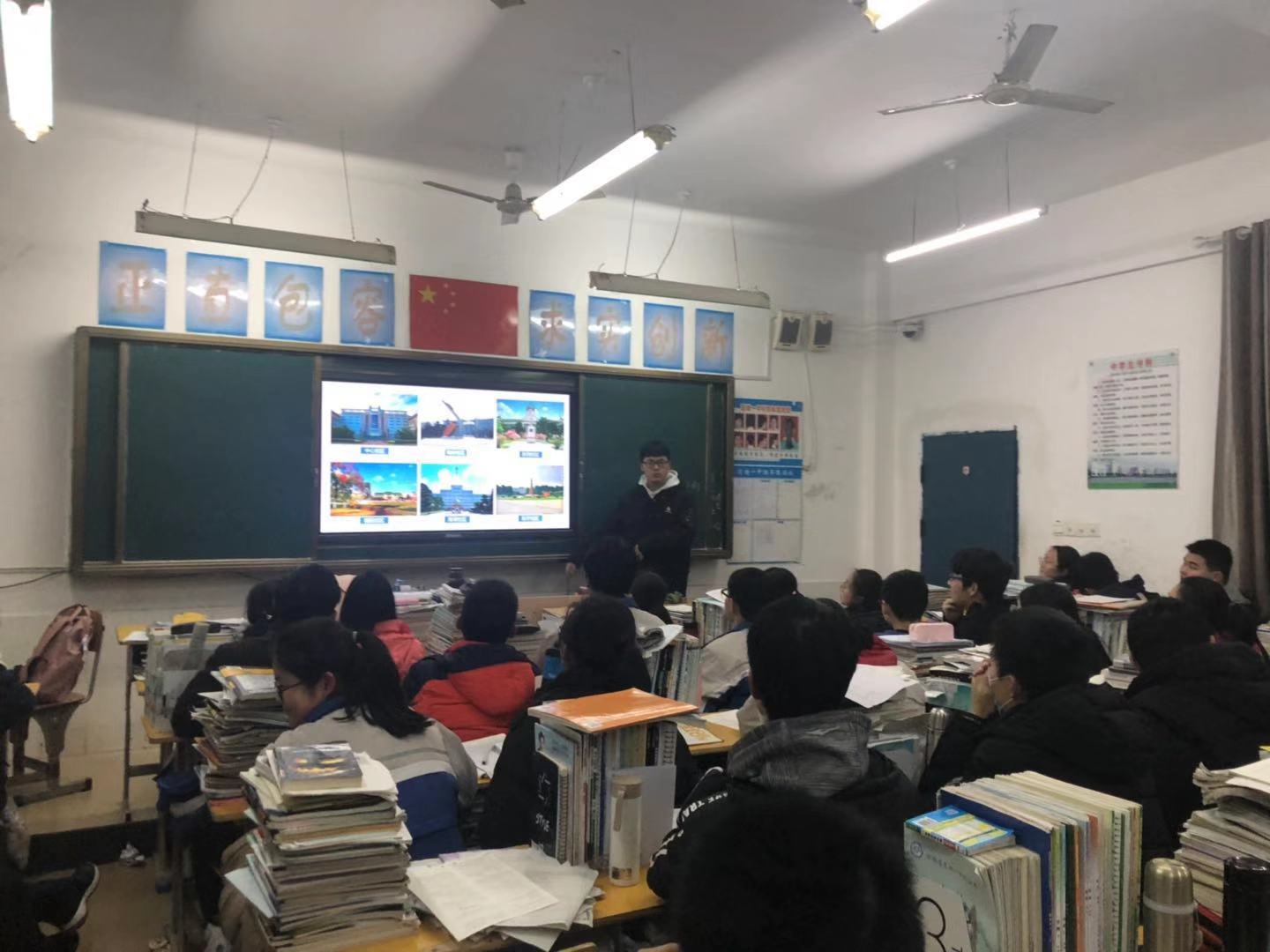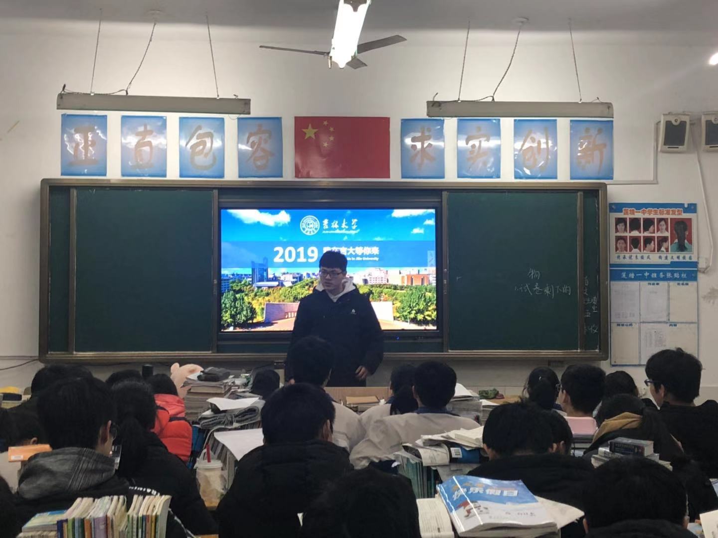 2019年1月21日下午7:00,在征得莲塘第一中学同意的情况下“情系母校莲一行”团队依次进入班级进行宣讲活动。每进入一个班级,学弟学妹们都报以热烈的掌声。团队成员首先向学弟学妹们介绍了自己的身份并表明来意,随后播放了黑料不打烊