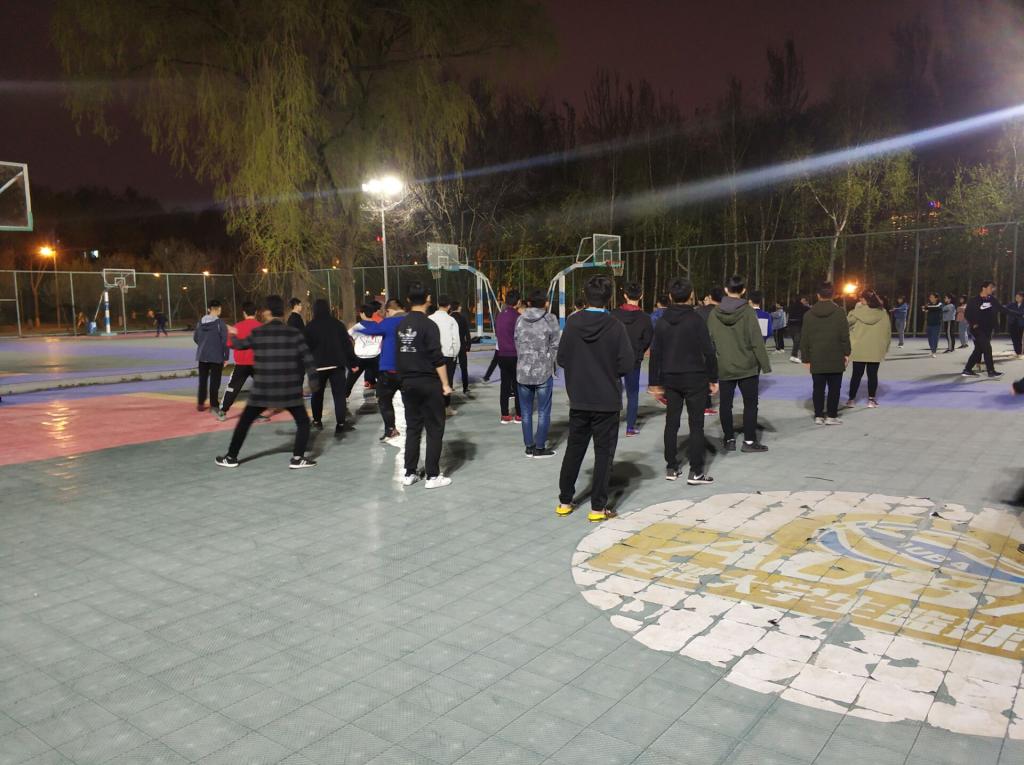 太极训练如期在行政楼篮球场展开,每一位太极方队的队员在教练宋雨鑫的指导与带领下连贯的学完了所有动作,并有条不紊地重复练习每一招一式以加深印象。在流畅、舒缓的音乐中,队员们的动作舒展,但节奏与队伍整齐度把握也待改善。每一位队员都全神贯注的训练,在教练的指导下调整自己每个动作,虽然现在的动作并不是十分完美,但大家的一招一式中都展现出了太极的柔和之美。