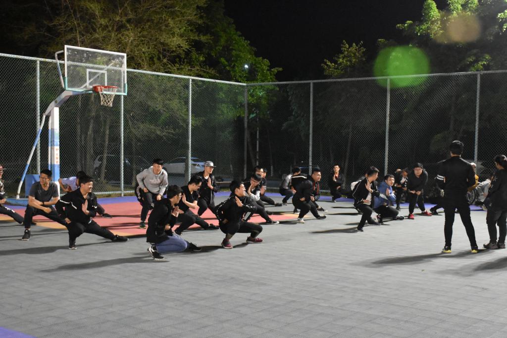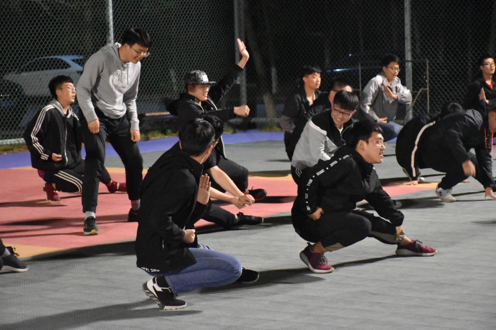 此次三路长拳队伍由来自2018级的30名同学组成,长拳教练由2017级同学担任。训练工作首先是由三路长拳教练——刘明鑫同学和曲德馨同学向参加本届运动会长拳比赛的同学示范动作,同时对动作细节进行详细的讲解。然后,教练将动作分解后,一步一步指导给参赛同学,力求每个同学都能将动作做到标准。在保证动作标准的同时,同学们还要时刻配合队伍的其他同学,保证队伍整齐划一。虽然夜晚天气寒冷,但同学们依然精神饱满,毫不懈怠地进行着长拳训练。最后,教练们指导同学们排练了三路长拳比赛当天的进场入场,力争在比赛当天,向全校师生展现仪电黑料不打烊