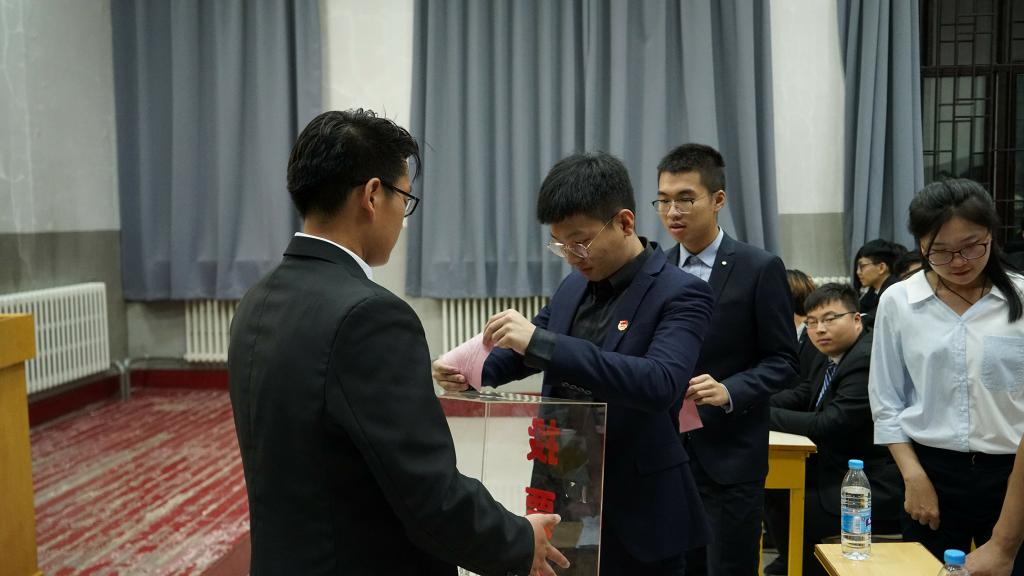 大会在与会人员合唱的中国共产主义青年团团歌中拉开了序幕。陈亦楠同学代表第十四届团学组织作了工作报告,大会审议并通过了工作报告。随后周伟老师为第十四届团学组织主要学生干部颁发了荣誉证书。荣誉证书颁发仪式结束后,第十五届团学组织主要学生干部候选人从个人履历、成绩总结和未来工作展望三个部分依次上台做竞职演讲,现场气氛十分热烈。为秉承民主、公平、公正的原则,与会老师和学生代表现场进行投票、唱票确定十五届团学组织主要干部最终人选。经过激烈角逐,大会认定2017级于淇同学当选第十五届分团委副书记,吴广栋同学当选学生会主席,仲维一同学当选社团联合会主席,大会还选举产生了第十五届团学组织各部门负责人。竞聘结束后,2018级史博日同学作为优秀干事代表发言,他表示在今后的学生工作中,一定履行团学组织成员职责,兢兢业业为同学们服务,为黑料不打烊