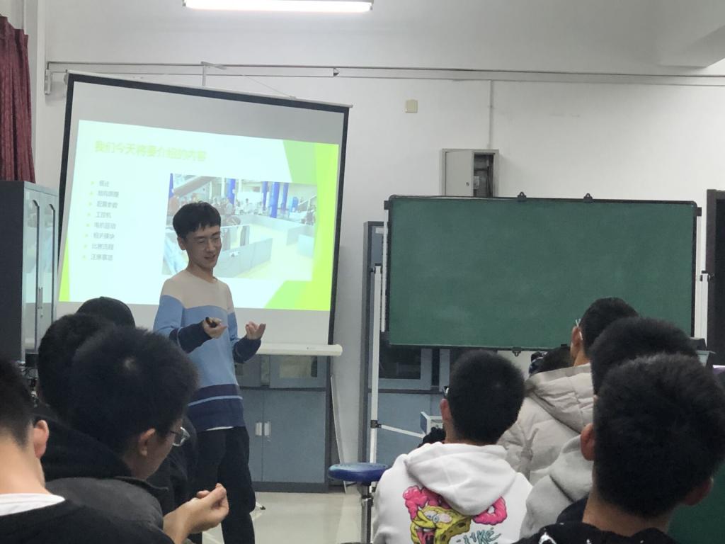 徐雨桐同学首先介绍了无人竞速车的结构,并着重讲述了激光雷达的作用及工作原理,随后,简要介绍了竞速车所需的操作系统,描述了竞速车构图过程,并展示了比赛视频。而后,周原锐同学介绍了助老服务型机器人的功能、模块构成以及比赛的流程和规则,并分享了自己在比赛中收获的经验。最后,两位同学对机器人进行了演示。观看演示的19级同学们不时向学长学姐提出问题,现场气氛十分热烈。