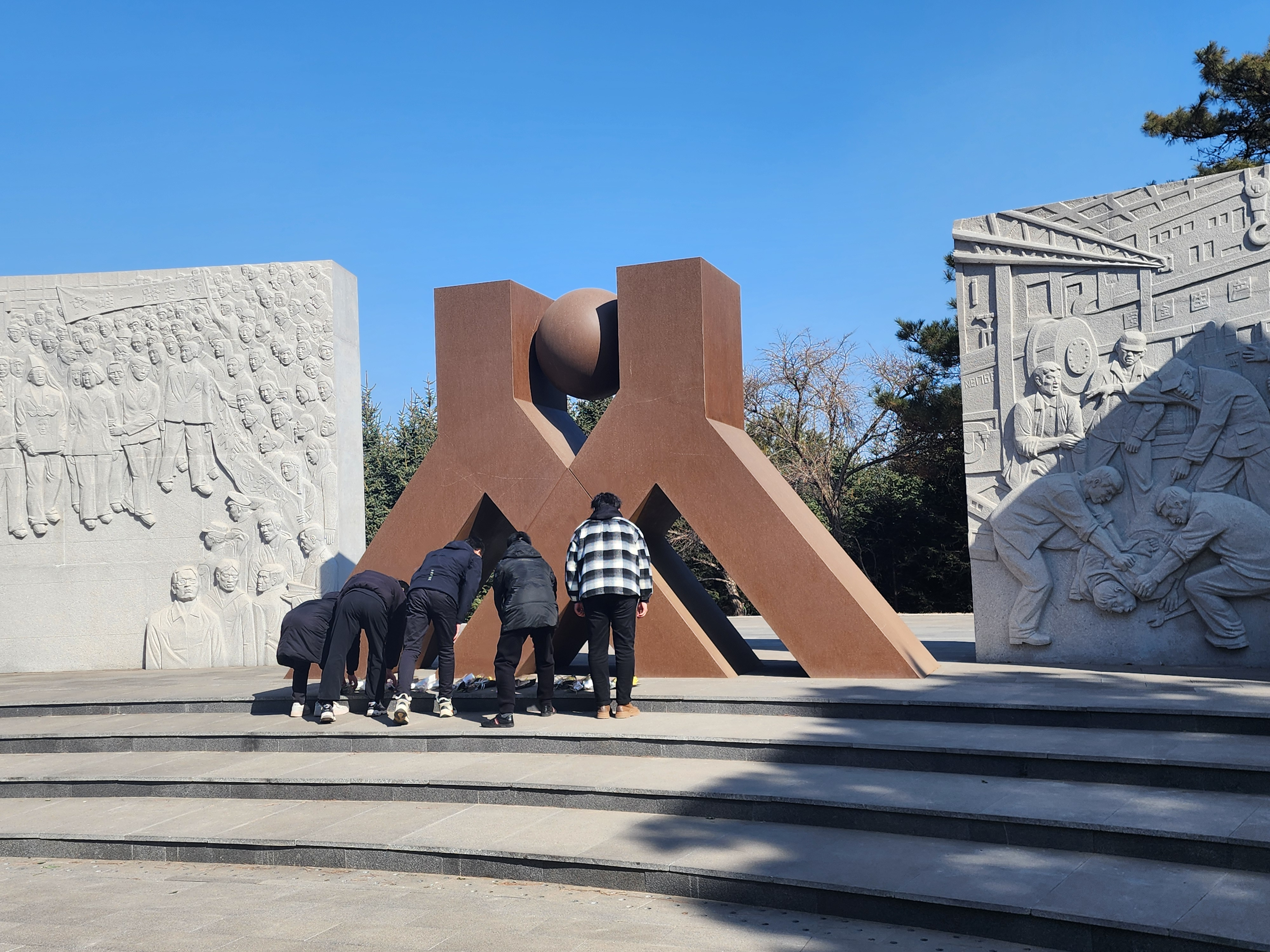 博士生在长春市革命烈士陵园开展“清明祭英魂,缅怀烈士行”主题党日活动。