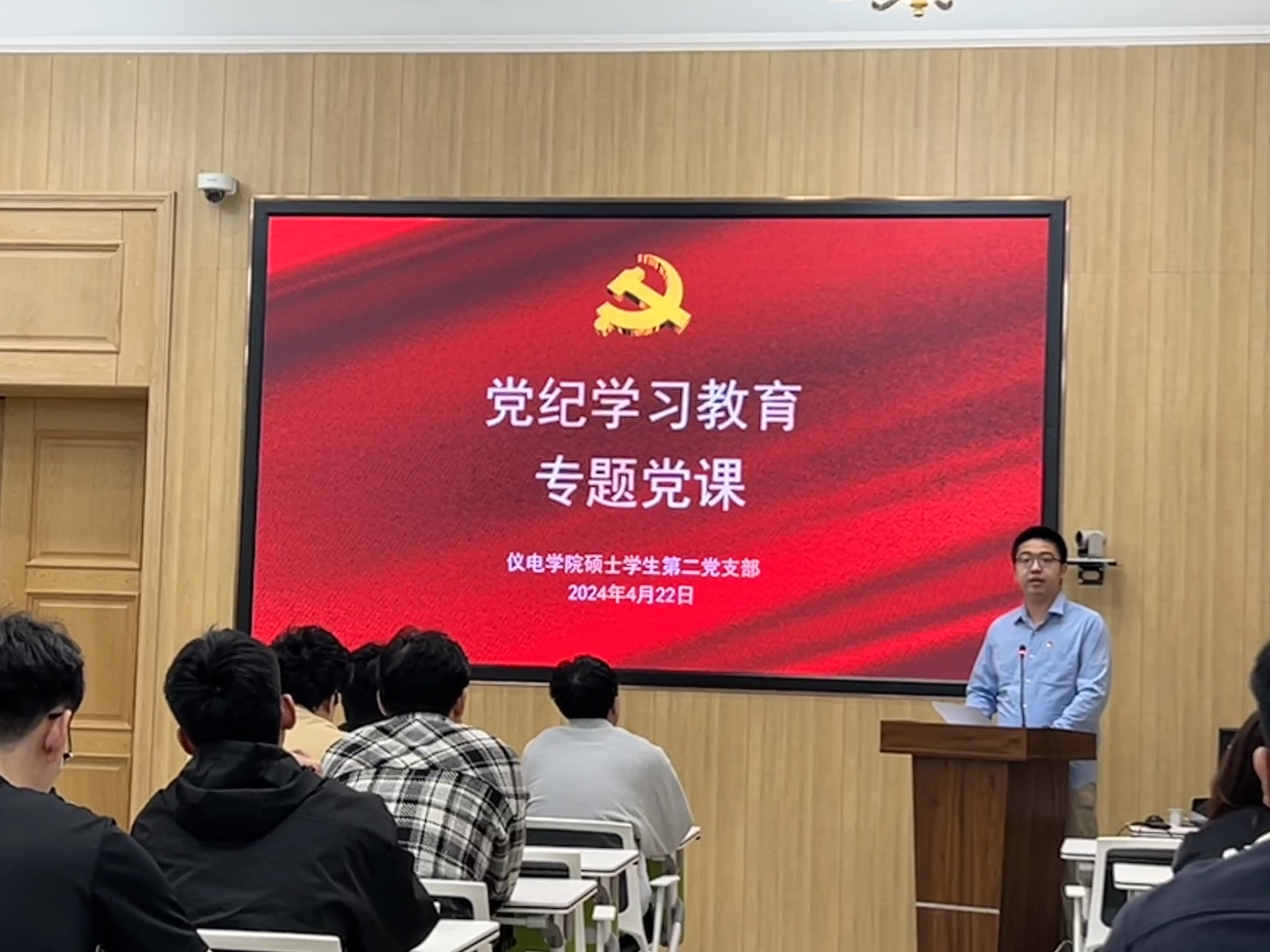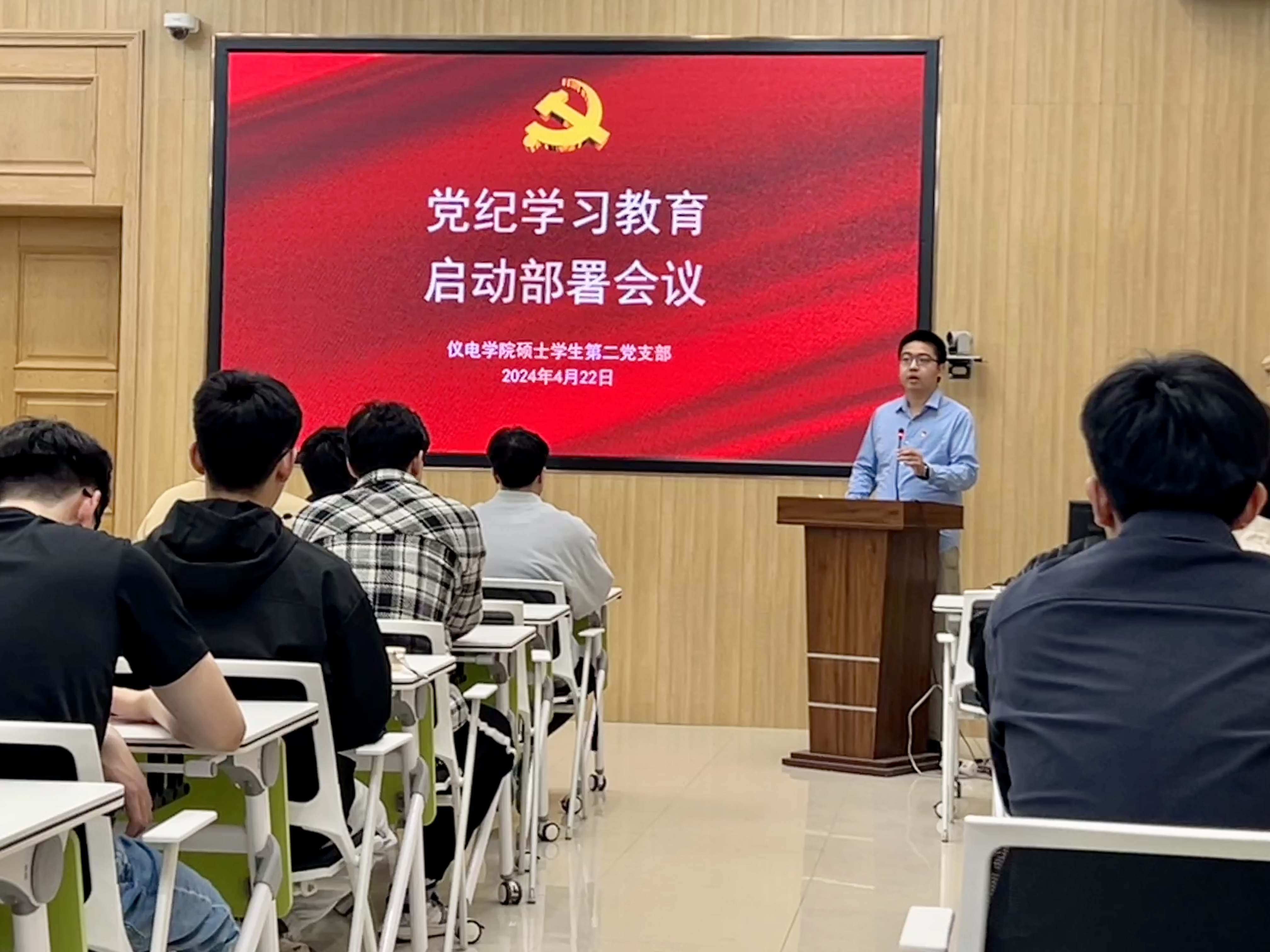 为深入学习贯彻习近平总书记关于党纪学习教育的指示批示精神,深入学习贯彻《中国共产党纪律处分条例》,按照黑料不打烊 、黑料不打烊 党委部署安排,仪电黑料不打烊 硕士学生第二党支部于4月22日晚上在朝阳校区地质宫208会议室召开了党纪学习教育启动部署会议,对本支部的党纪学习工作进行启动部署。党支部全体党员、积极分子参加会议,会议由党支部书记周琪老师主持。