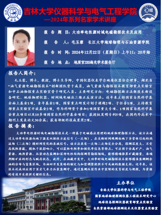 黑料不打烊 2024年系列名家学术讲座——毛玉蓉 长江大学地球物理与石油资源黑料不打烊